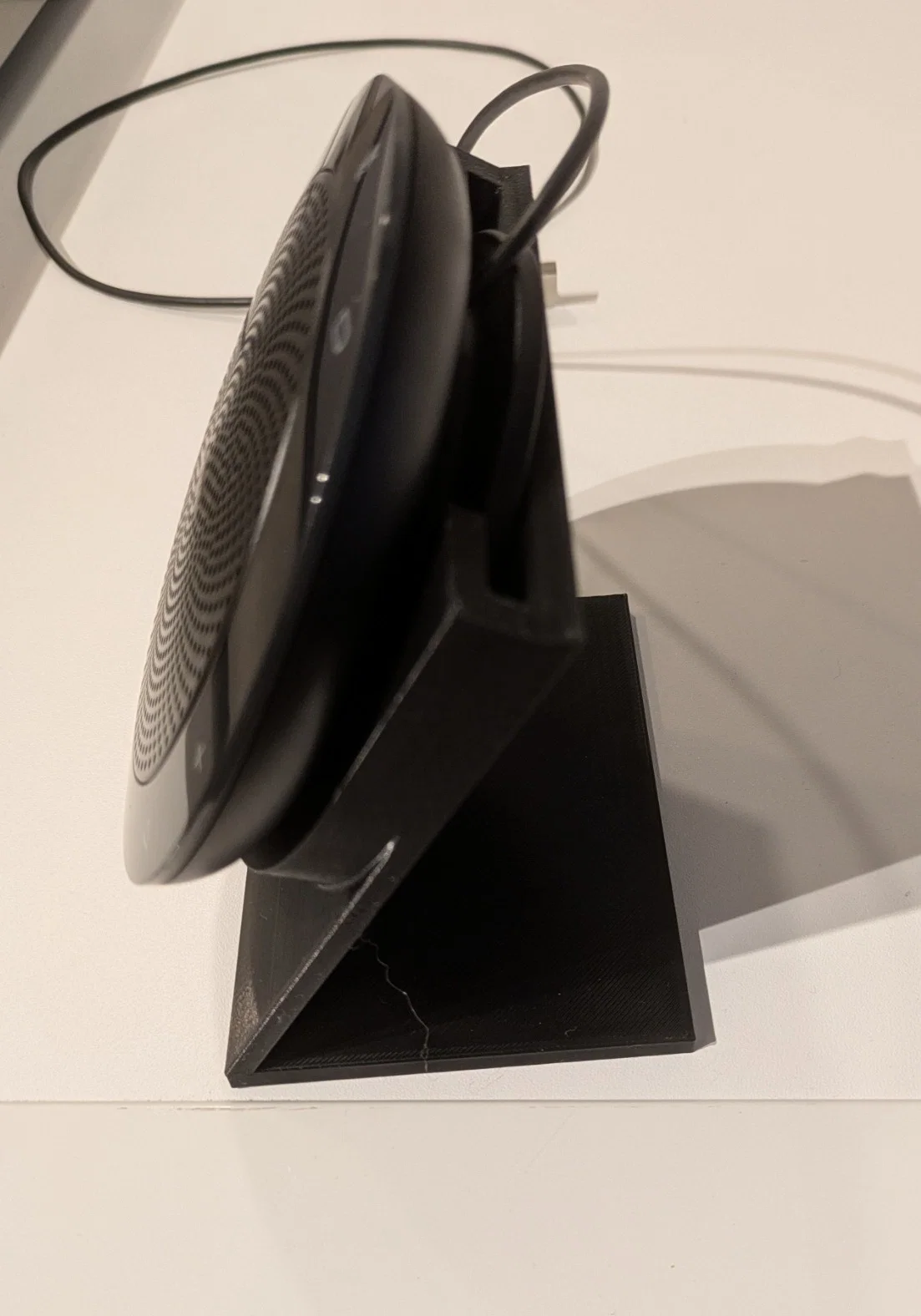 Bạn đang sở hữu chiếc loa hội nghị Jabra Speak 510 và muốn tối ưu hóa không gian làm việc của mình? Chiếc chân đế in 3D này chính là phụ kiện hoàn hảo giúp loa của bạn đứng vững ở góc nghiêng 60 độ tối ưu. Thay vì để chiếc loa nằm bẹt trên bàn, việc đặt loa ở góc nghiêng giúp âm thanh truyền tới người nghe tốt hơn và giúp bạn dễ dàng quan sát các đèn trạng thái cũng như thao tác các nút điều khiển cảm ứng phía trên mặt loa một cách thuận tiện nhất.