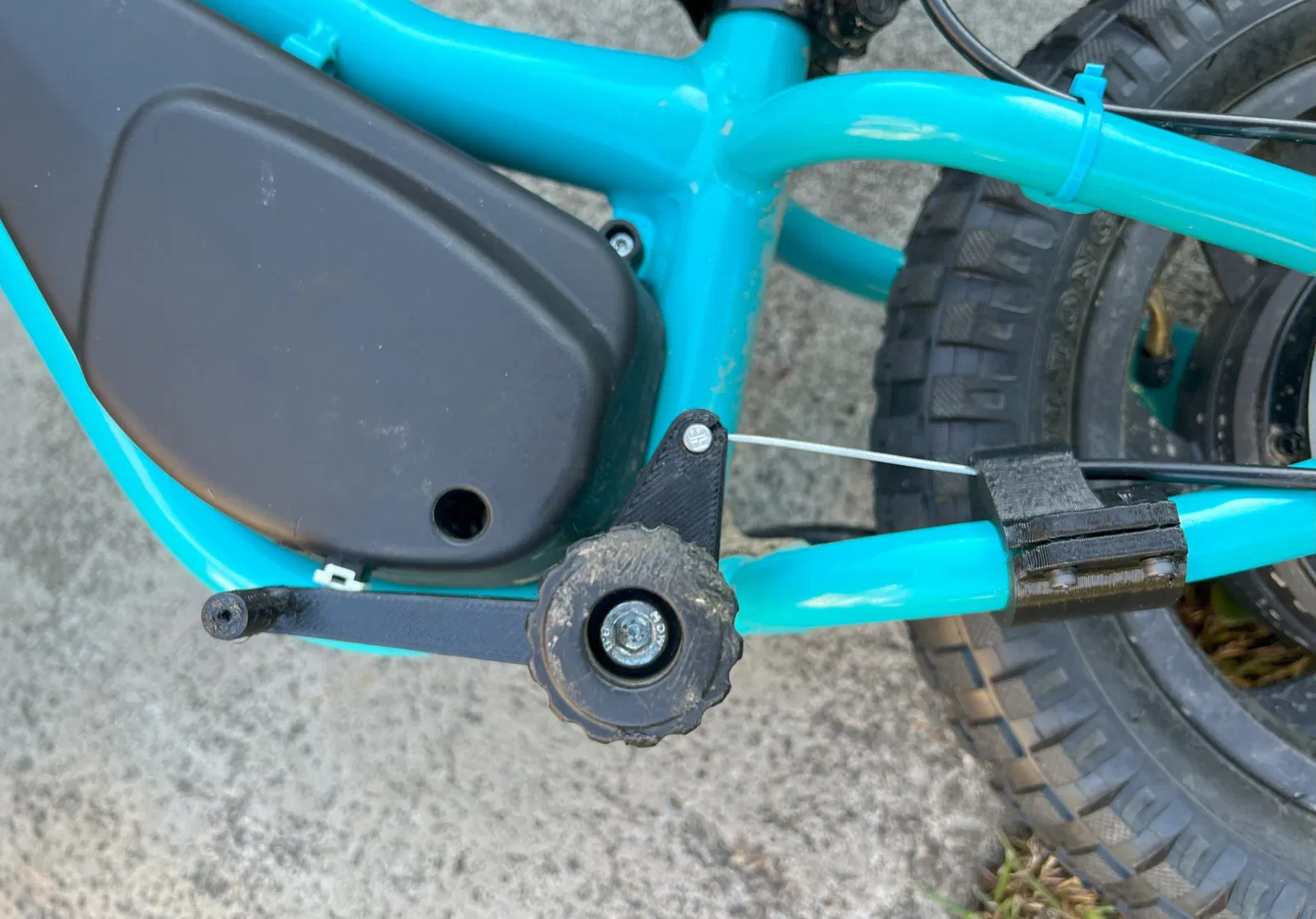 Tôi đã in với 100% độ đặc. Có một lỗ qua chỗ để chân để cho phép một con ốc m3 được vặn vào để tăng cường độ bền. Dây phanh cũng phải được cắt ngắn lại cho vừa chiều dài.
