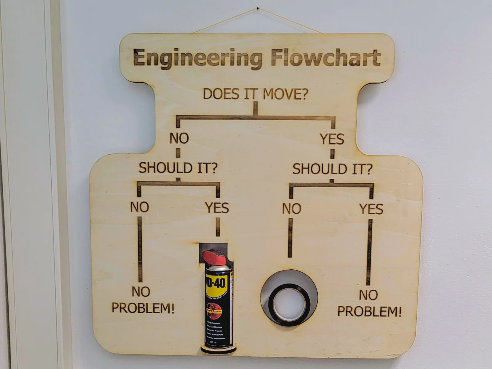 Một phiên bản cải tiến từ meme kỹ thuật nổi tiếng. Thay vì phải mua file như trên mạng, mình đã tự thiết kế lại để mọi người có thể in miễn phí. Sản phẩm phù hợp để treo tường hoặc để bàn, đừng quên chuẩn bị thêm WD-40 và băng keo duct tape để hoàn thiện nhé!