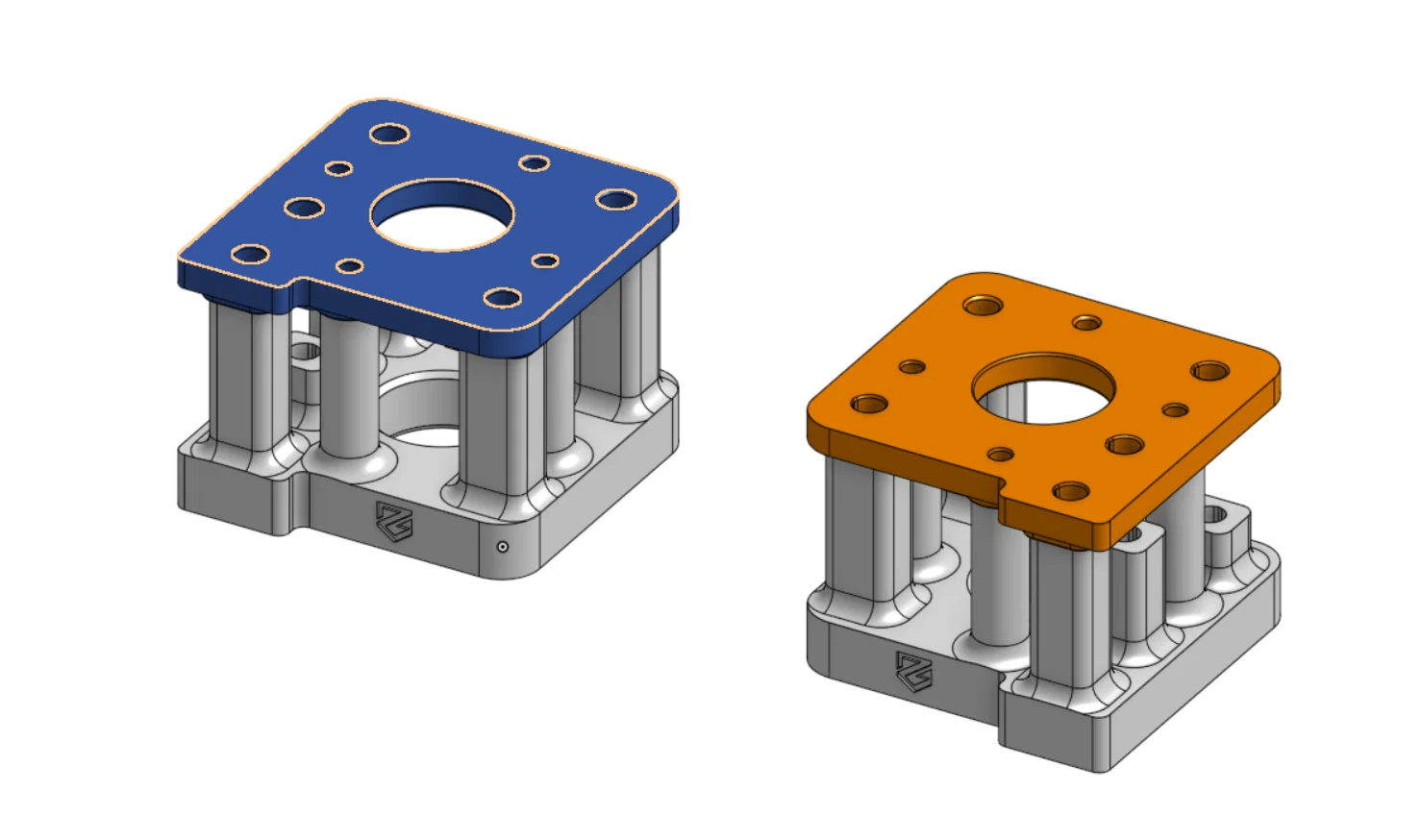 Vì vậy, lấy cảm hứng từ thiết kế tháp động cơ bên trong khung của mhunley123, mình đã thiết kế lại một phiên bản tương tự với vài cải tiến: đầu tiên, thiết kế của anh ấy chỉ dùng 2 vít M5x50 bắt chéo cho mỗi bên giống như tháp nguyên bản, điều này có thể khiến hai cạnh không được nâng đỡ bị cong dần theo thời gian. Do đó, mình quyết định sử dụng D5 + ( M4 x 0.7mm ) 304 stainless steel Socket Head Shoulder Bolts Stripper Screws - AliExpress 13 thay cho chốt định vị M5 ở cụm bạc đạn góc, giúp gia cố phần góc chắc chắn hơn nhiều. Một vít M5x50 khác có thể được bắt cùng với đai ốc chống xoay (nylock nut) ở mặt treo tự do của tháp để kẹp chặt hai nửa lại với nhau.