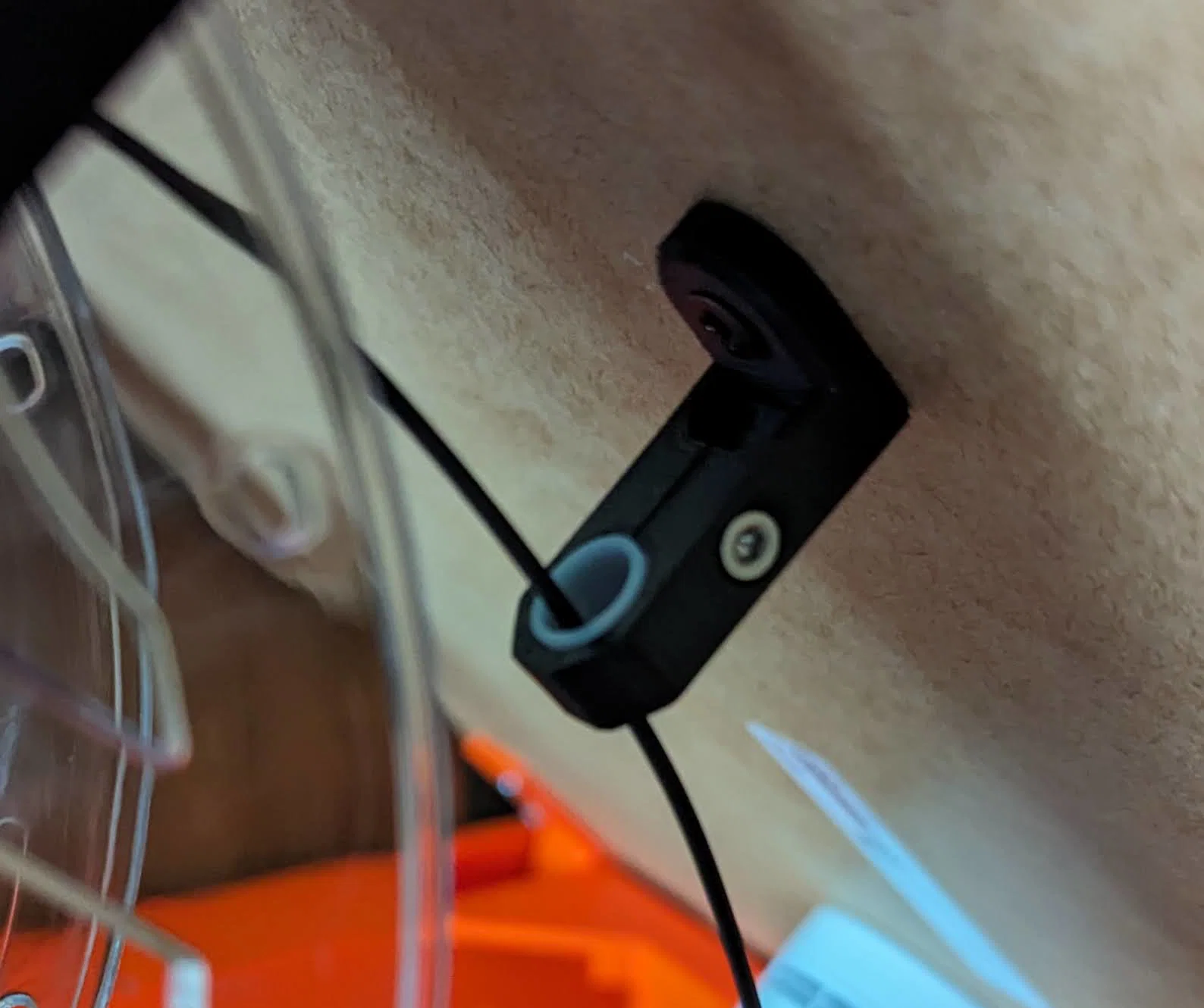 Bạn sẽ cần ống PTFE từ bộ dẫn hướng gốc của máy, cùng với ốc vít 3mm và đai ốc. Ngoài ra, bạn cần thêm dụng cụ để cố định; mình thì dùng một con vít gỗ tự khoan nhỏ.