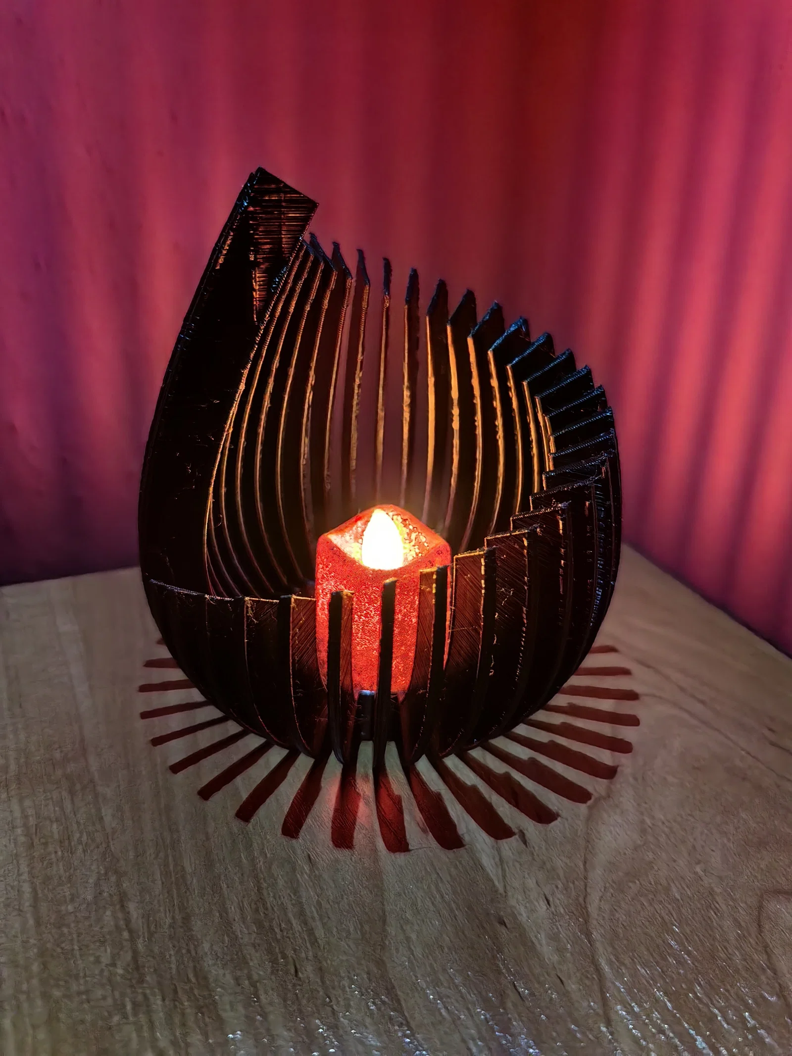Mang đến vẻ đẹp hiện đại và tinh tế cho ngôi nhà của bạn với mẫu chân nến Tealight độc đáo này. Với thiết kế dạng nan gợn sóng đầy tính nghệ thuật, sản phẩm này không chỉ là một giá đỡ nến thông thường mà còn là món đồ trang trí nội thất đầy ấn tượng. Ánh sáng từ nến điện tử khi đi qua các khe hở sẽ tạo nên những vệt sáng đổ bóng tuyệt đẹp, mang lại bầu không khí thư giãn, ấm áp cho bất kỳ căn phòng nào. Rất dễ in ấn, phù hợp với mọi người yêu thích decor DIY. Chúng tôi đặc biệt khuyến khích sử dụng nến LED thay vì nến sáp thật để đảm bảo an toàn cho sản phẩm và không gian sống của bạn.