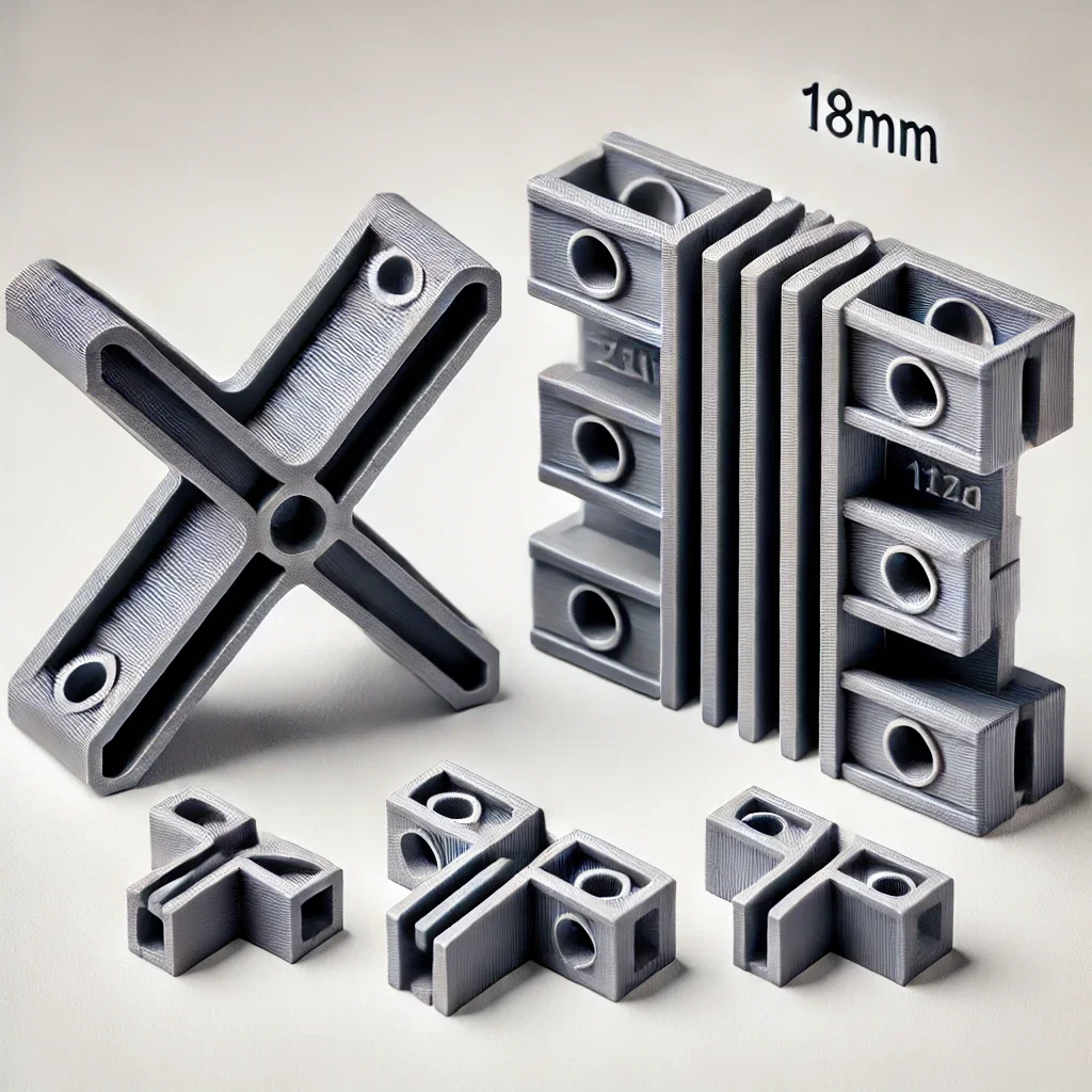 Bộ ê-ke in 3D dạng X và T giúp bạn lắp ráp ván Melamine 18mm cực kỳ chính xác và ổn định. Sản phẩm hỗ trợ đắc lực cho việc đóng tủ, kệ, giúp giữ góc vuông chuẩn xác và tiết kiệm thời gian cho người làm mộc.