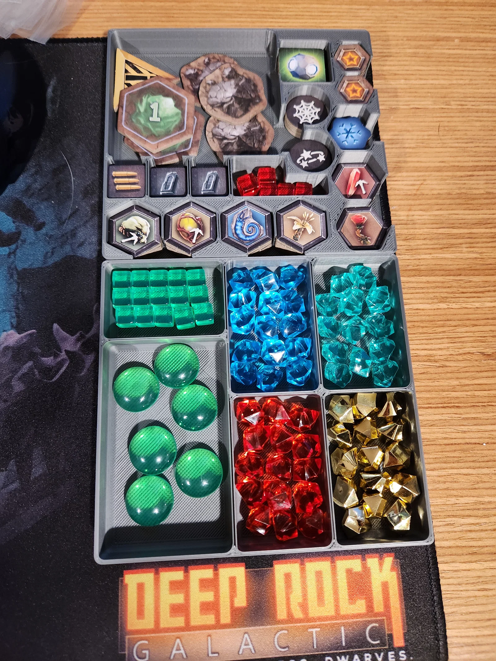 Mình mới nhận được board game Deep Rock Galactic sau khi ủng hộ trên Kickstarter. Thú thật là mình thấy hơi bị ngợp vì số lượng linh kiện quá nhiều, lại còn phải sắp xếp tỉ mỉ mới bắt đầu chơi được. Sau khi đã in vài bộ organizer cho các game khác, mình biết chắc phải có cách nào đó gọn gàng hơn, nhưng vì game còn quá mới nên chưa thấy ai làm cả.