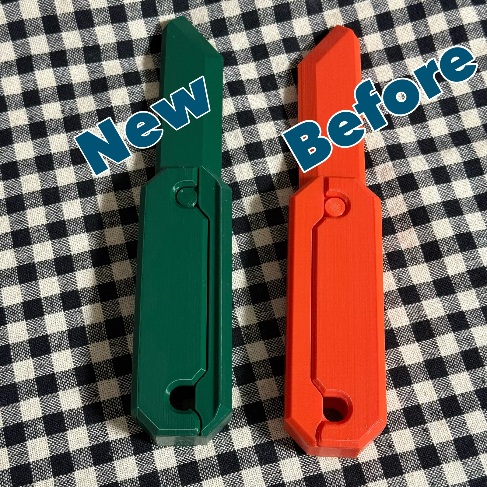 Kích thước gốc hơi nhỏ nên mình đã thiết kế lại phiên bản kéo dài để cầm nắm vừa tay hơn. Bản cập nhật mới có thêm gờ nhỏ giúp móc ngón tay thuận tiện, độ khó in ấn vẫn không đổi. Lưu ý cẩn thận khi sử dụng để tránh bị thương nhé.