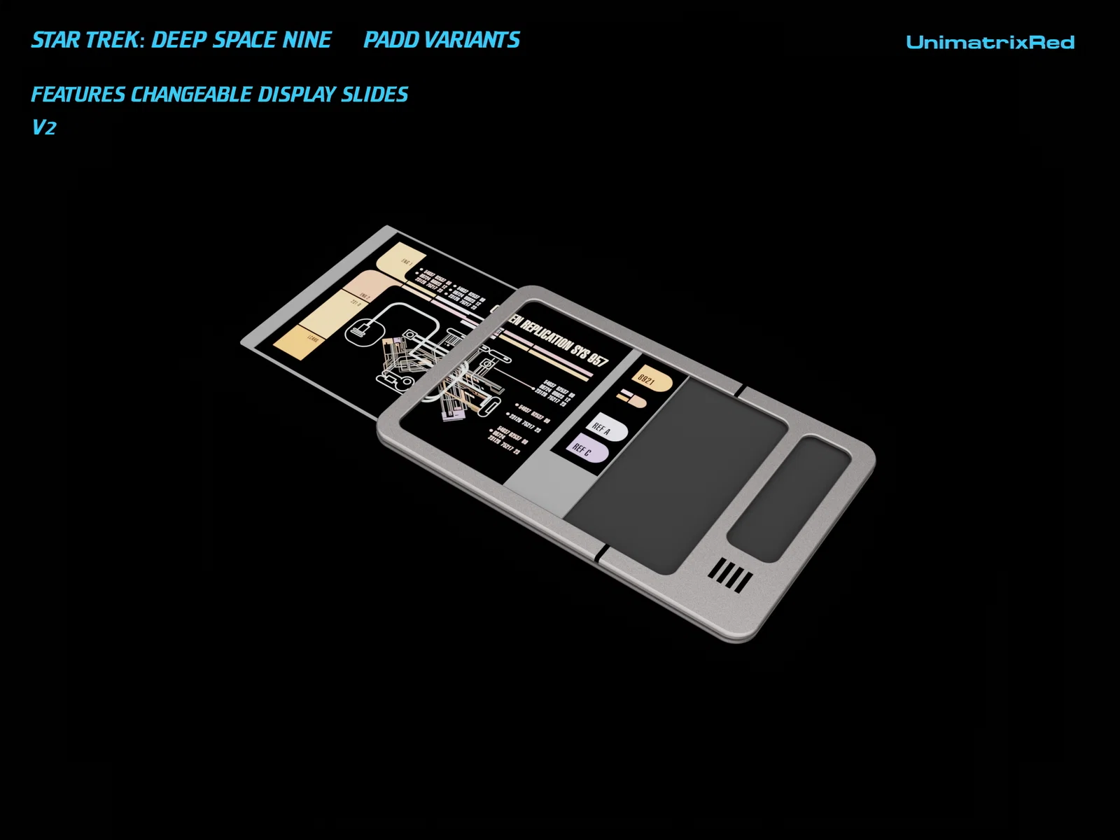 Đây là phiên bản PADD kích thước lớn của mình từ loạt phim Deep Space Nine. Các mẫu này thay đổi rất nhiều giữa các tập phim và cảnh quay, nên mình đã đưa ra nhiều lựa chọn để bạn có thể tìm đúng kiểu dáng mình cần khi muốn tái tạo đạo cụ trên phim.