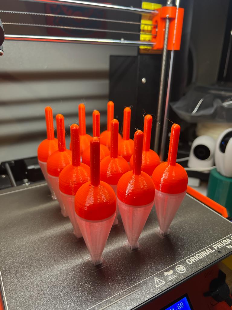 Mẫu phao câu cá được thiết kế tối ưu, in bằng nhựa PET-G với độ infill 5% rất tiết kiệm. Mẫu này đã được kiểm chứng thực tế, bạn có thể dễ dàng tùy chỉnh đổi màu trong PrusaSlicer để tạo ra chiếc phao ưng ý nhất cho riêng mình.
