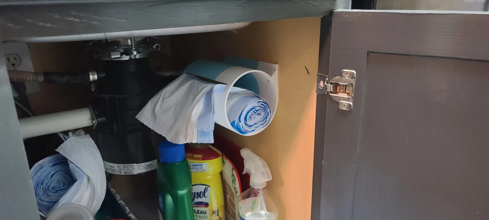 Đã làm lại cái này để gắn vào bên hông của một cái tủ. Đã làm nó lớn hơn một chút để phù hợp với các cuộn túi thương hiệu Glad.