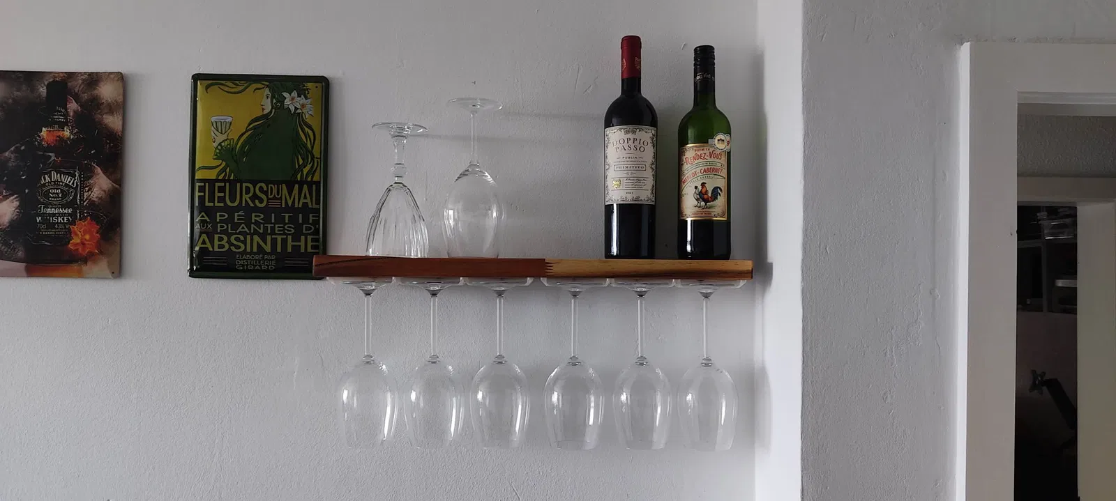 Người giữ đơn giản cho ly rượu. Gắn bằng ốc vít dưới kệ hoặc tủ.