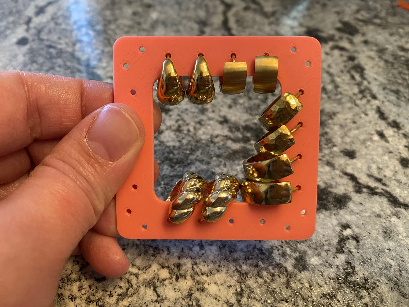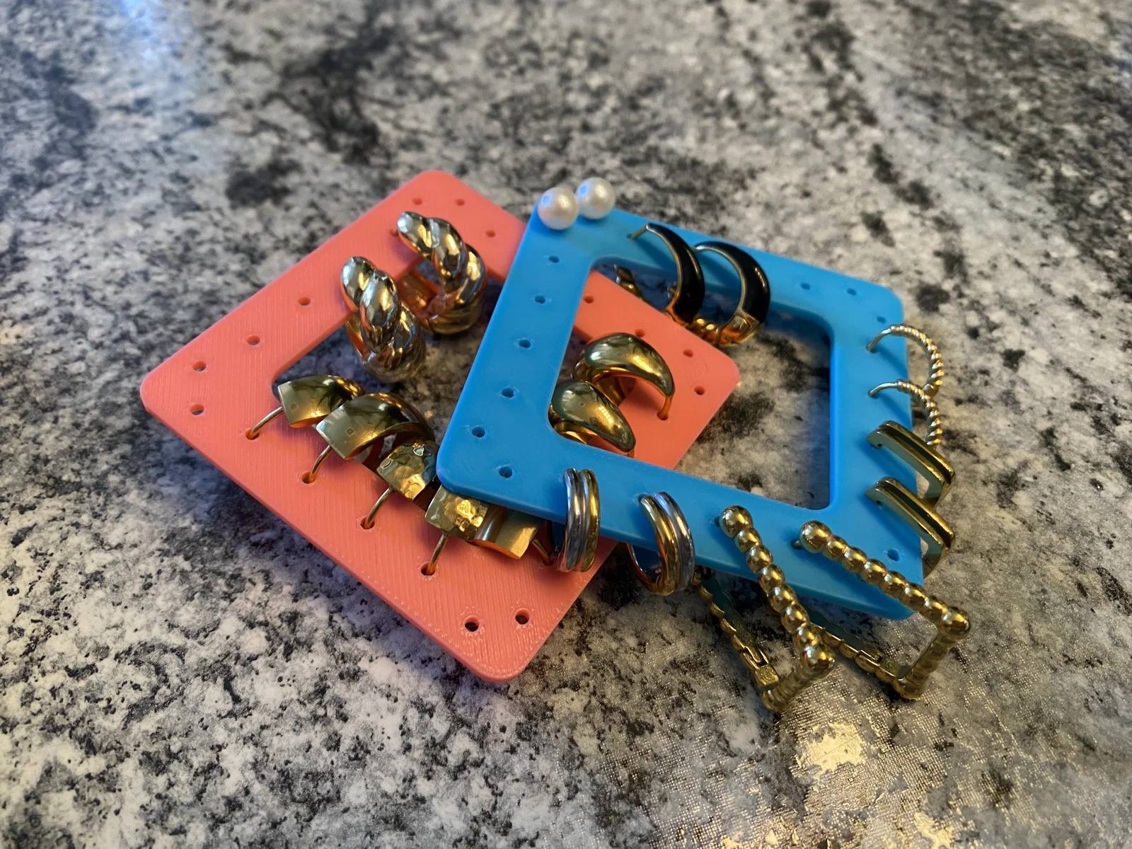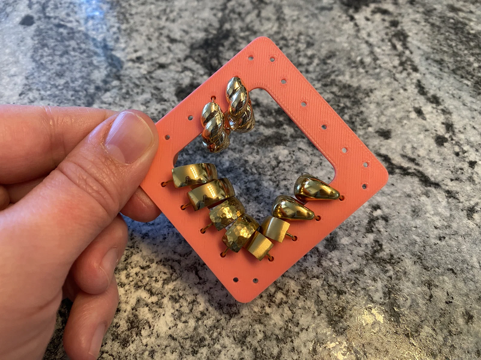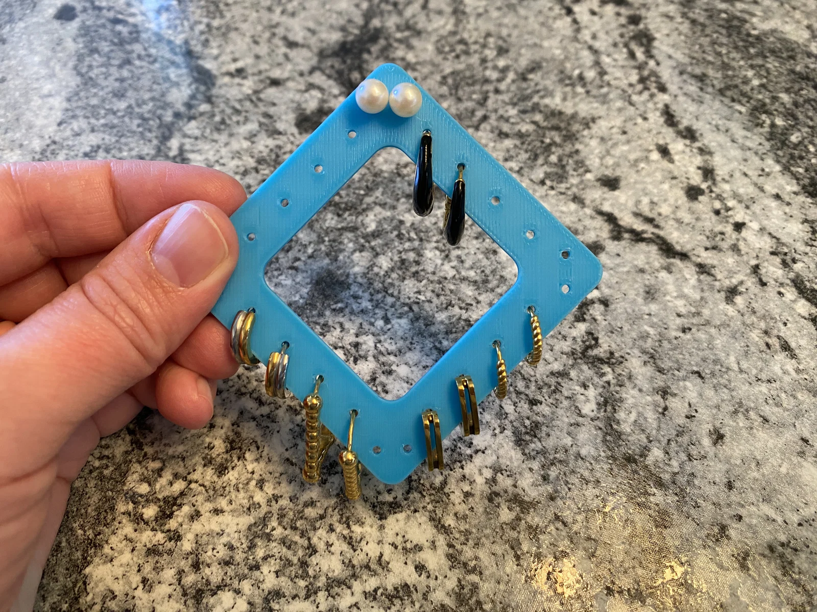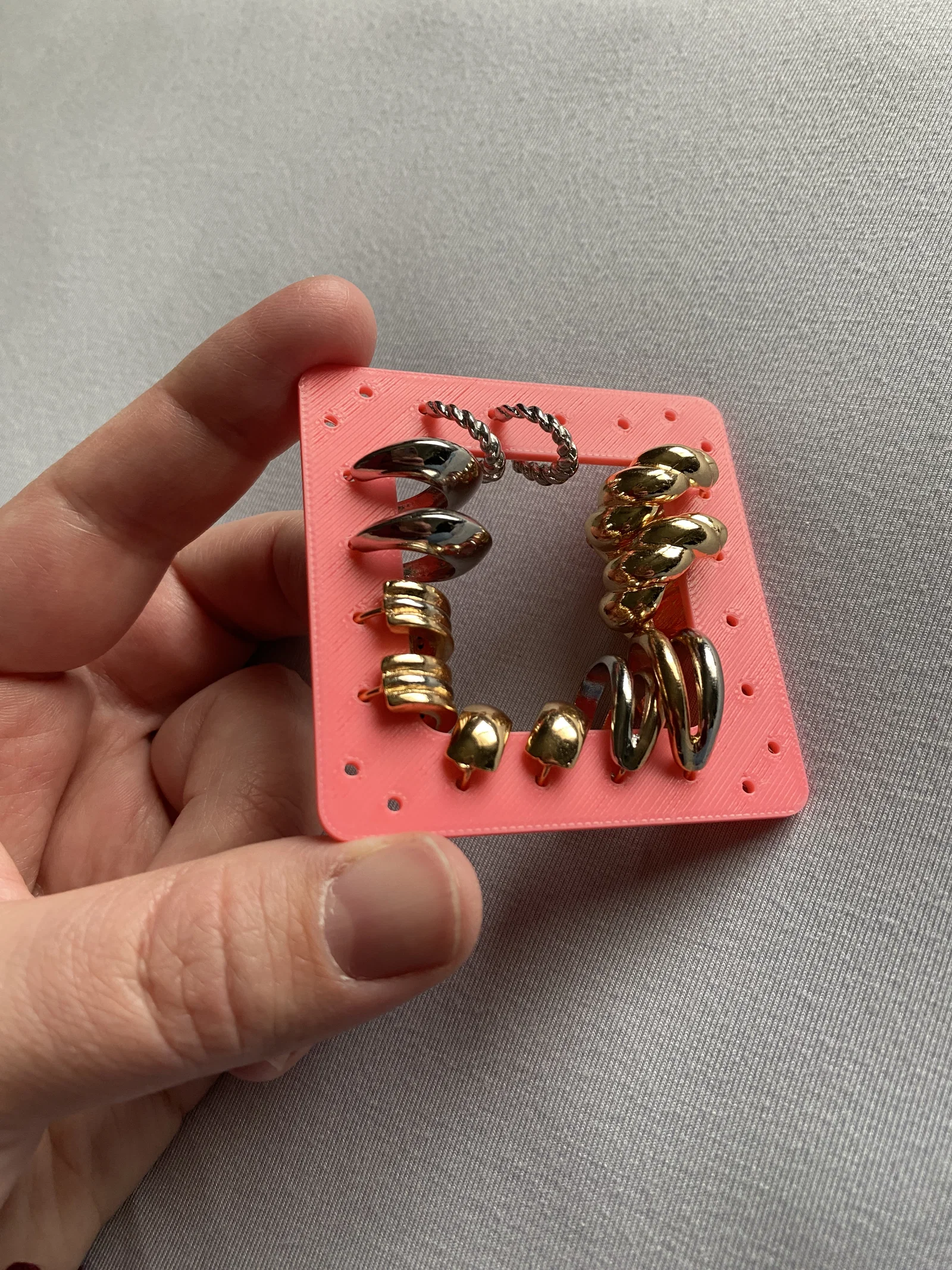 Mình muốn tìm một cách để giữ mấy chiếc hoa tai vòng (hoop) được gọn gàng nên đã thiết kế cái này. Hoop có thể được đặt ở phía ngoài hoặc phía trong đều được. Rất tiện lợi khi mang theo đi du lịch nè. Các bộ giữ trang sức du lịch khác của mình ở đây: