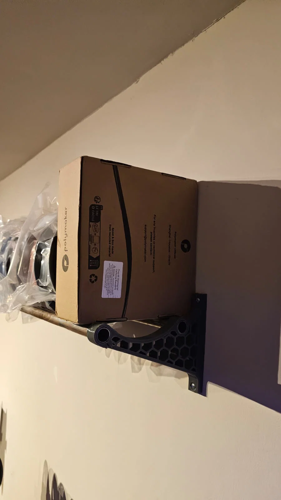 Giá treo cuộn nhựa PETG chắc chắn dành cho ống thép 3/4 inch. Thiết kế tối ưu với infill gyroid 20%, giúp chịu lực tốt và lắp đặt dễ dàng. Phụ kiện hoàn hảo để quản lý cuộn nhựa cho máy in 3D của bạn.