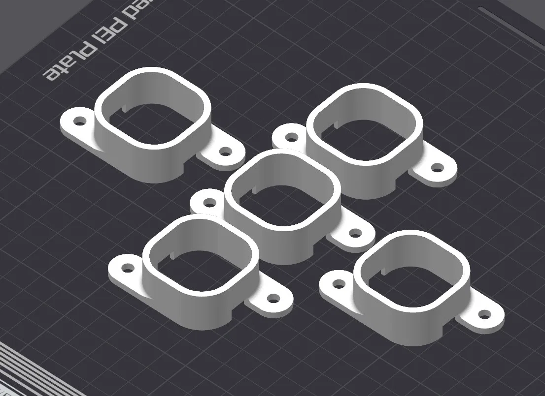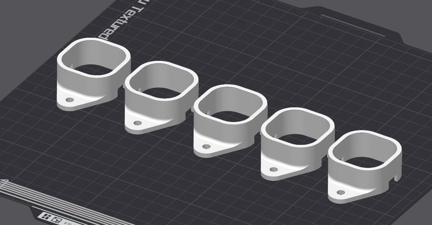 Mình khuyến khích các bạn nên in các giá đỡ này bằng nhựa PETG vì nó có độ bền tốt hơn trước tác động nhiệt từ đèn LED. Nhựa PLA có thể sẽ bị xuống cấp nhanh hơn trong điều kiện này.