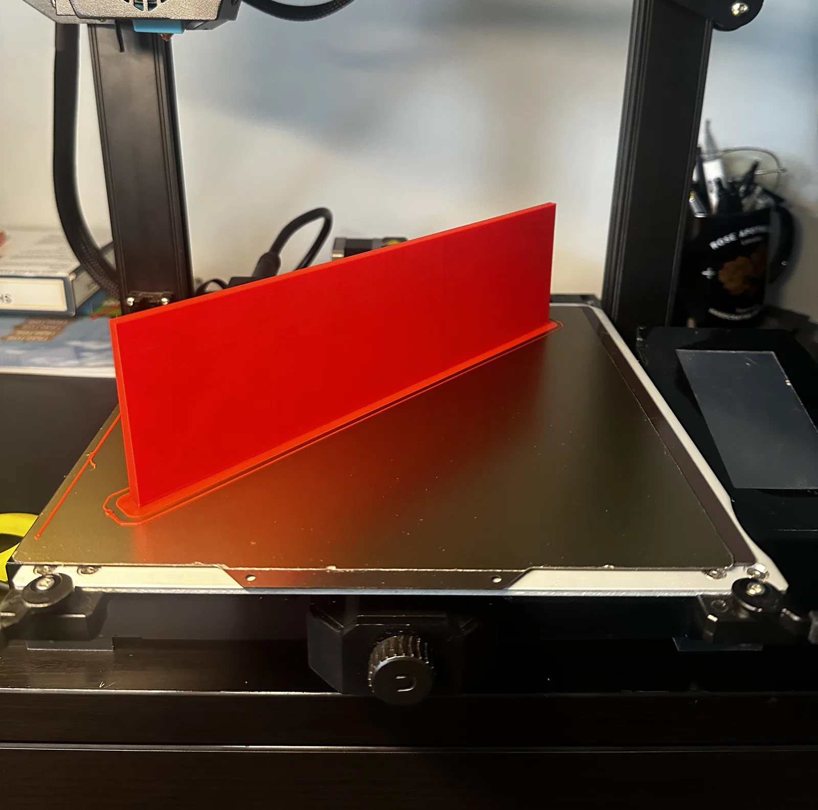 Mình đã thiết kế bộ vách ngăn để lắp vừa vặn cho các ngăn kéo Craftsman TradeStack. Vách ngăn ở giữa có chiều dài 260mm và hai vách ngăn hai bên dài 250mm. Mình đã in thử bằng nhựa Hatchbox PLA màu đỏ nhưng chúng không chịu được nhiệt. Sau đó mình in lại bằng nhựa PETG thì thấy ổn, nhưng mình khuyên các bạn không nên để hộp đựng dụng cụ ngoài thùng xe tải dưới trời nắng gắt mùa hè đâu nhé. Vì phần cạnh trên của vách ngăn được vát nên mình in chúng theo tư thế đứng với mặt nhỏ hướng xuống dưới. Mình in một lúc 6 cái liền mà không gặp vấn đề gì cả. 2 tường đứng (Vertical walls) Infill 10% (mình nghĩ là vậy) * Bật chế độ brim