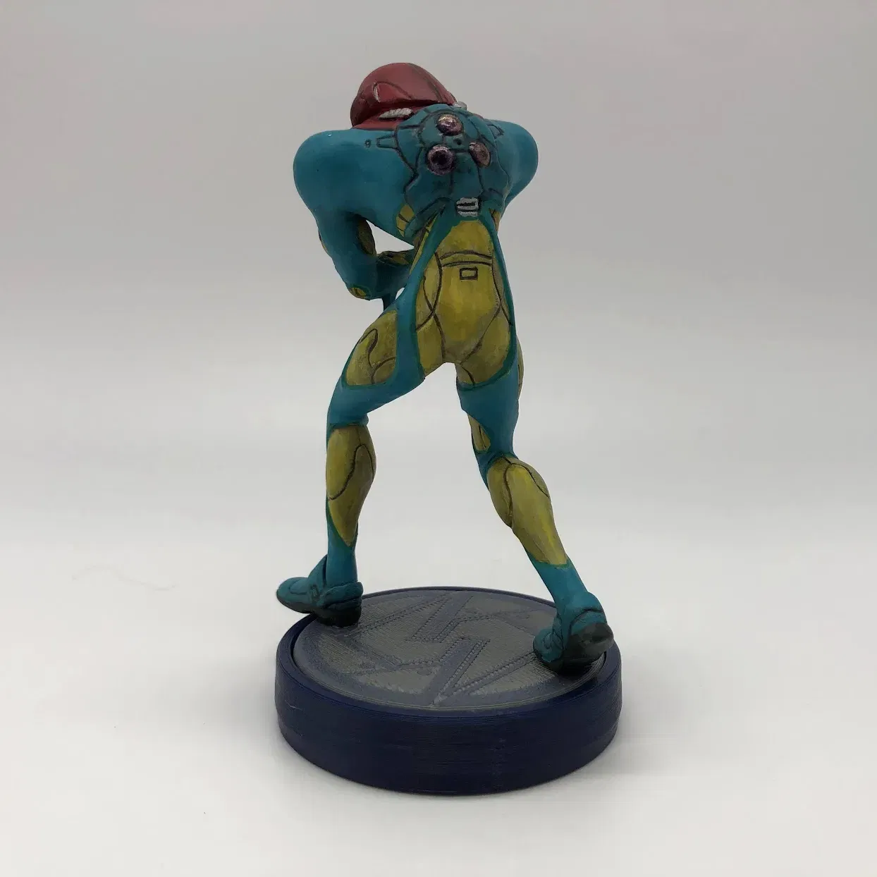 Samus trong bộ đồ hợp nhất từ Metroid Fusion với cơ sở kiểu amiibo.