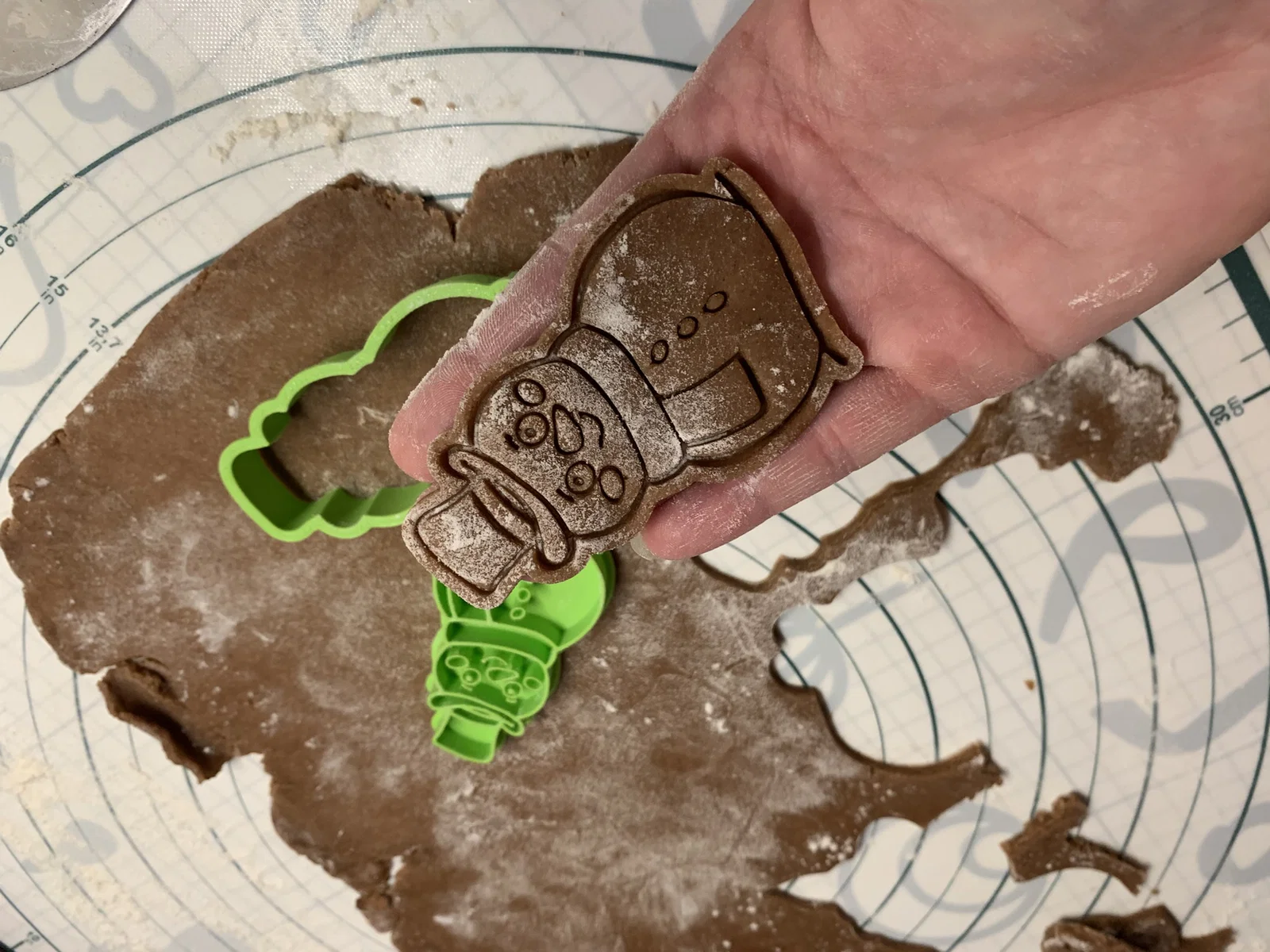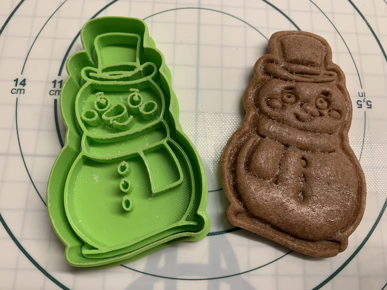 Khuôn cắt bánh quy hình người tuyết cực kỳ dễ sử dụng. Mình đã tự thiết kế mẫu này vì chưa tìm được khuôn ưng ý, giúp cắt bánh nhanh gọn, mép bánh đều đẹp mà không lo dính bột. Hãy thử ngay công thức bánh bơ và bánh quế cực ngon đi kèm nhé!
