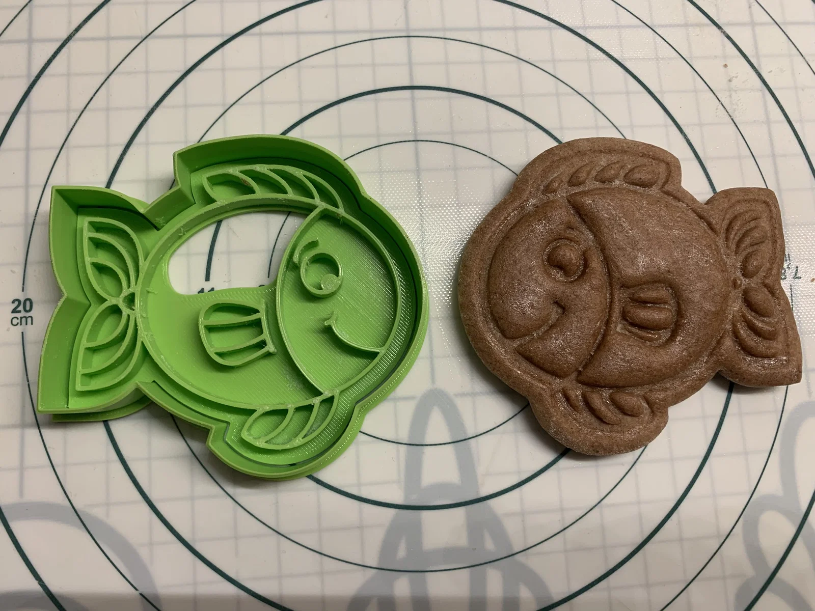 Khuôn cắt bánh quy hình cá. Mình tự thiết kế mẫu này vì không tìm được chiếc khuôn nào ưng ý. Khuôn được tối ưu để chống dính bột và tạo hình bánh có đường viền sắc nét, đều đẹp.