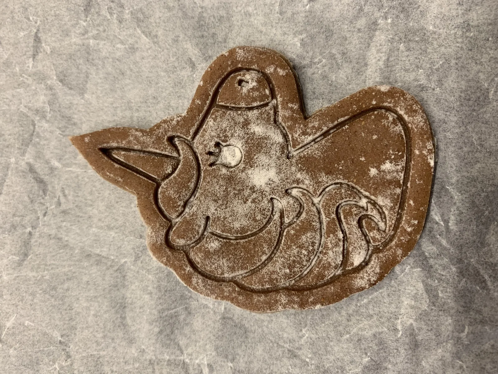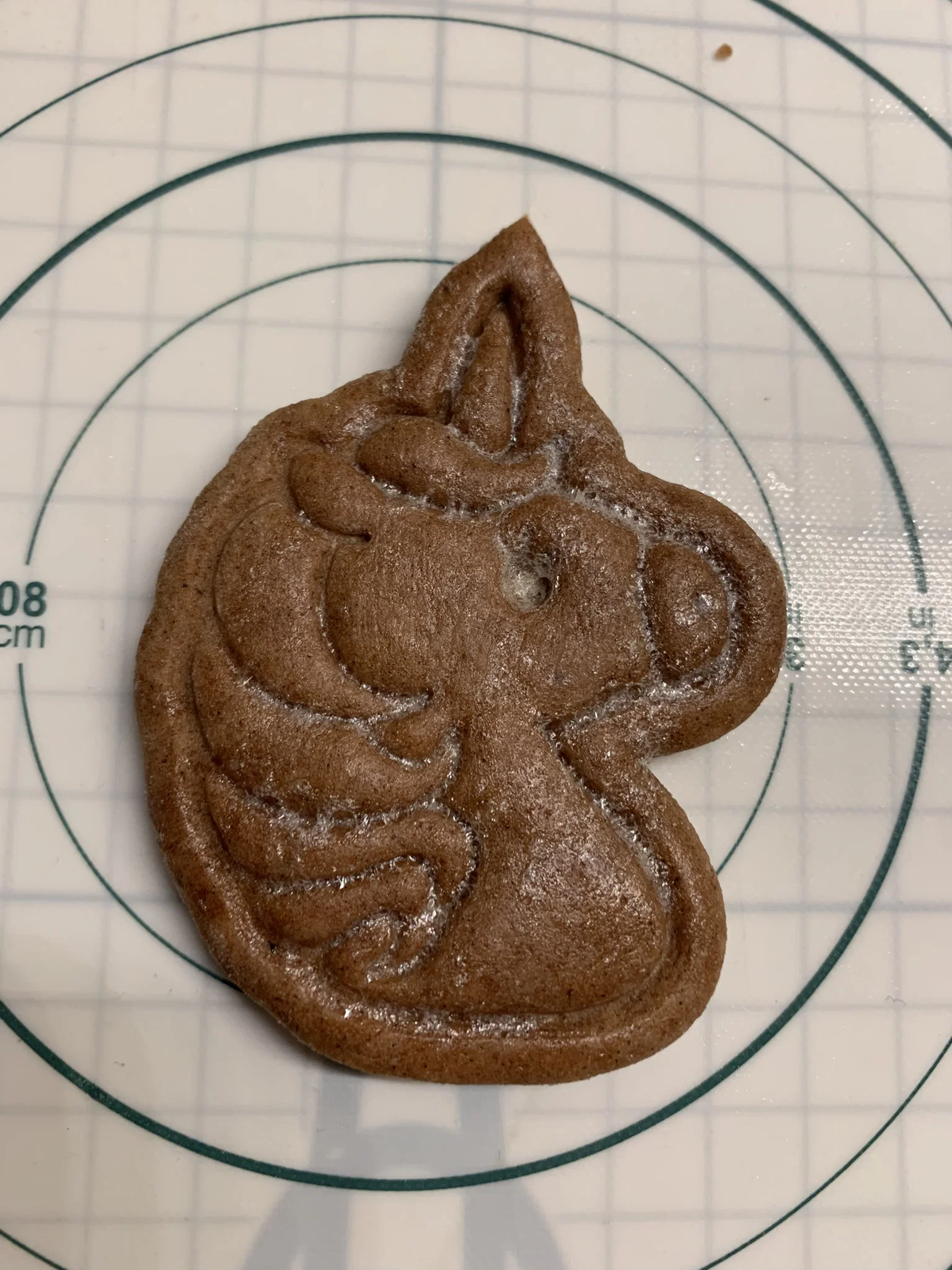 Khuôn cắt bánh quy hình kỳ lân xinh xắn. Mình tự thiết kế mẫu này vì không tìm được loại khuôn nào ưng ý trên thị trường. Sản phẩm giúp bột không bị dính và cho ra những chiếc bánh có cạnh đều, đẹp mắt.