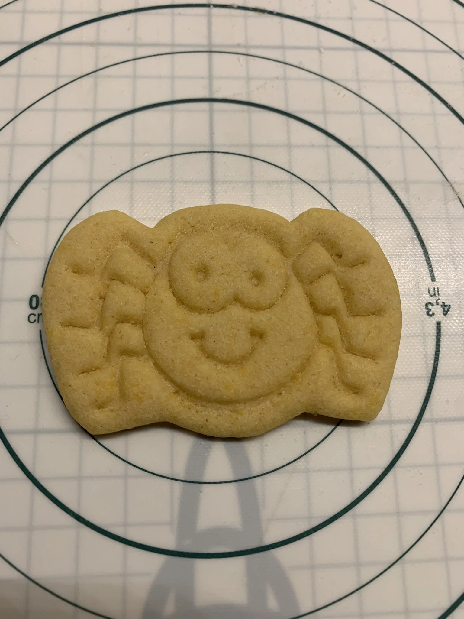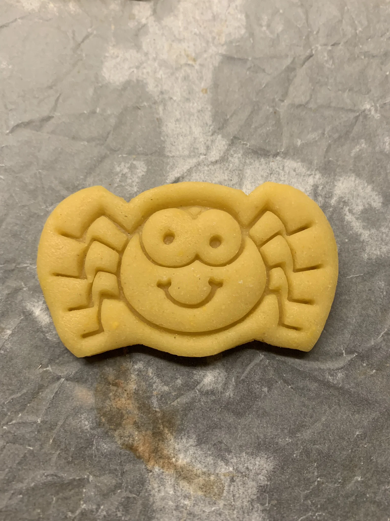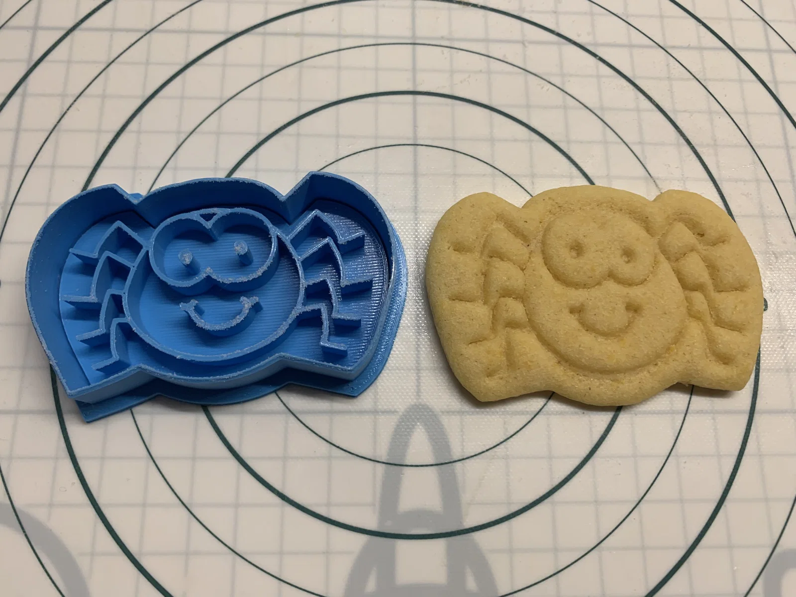 Khuôn cắt bánh quy hình con nhện. Mình đã tự thiết kế mẫu này vì không tìm được khuôn nào ưng ý. Khuôn được tối ưu hóa để bột không bị dính, giúp các cạnh bánh đều và sắc nét hơn.