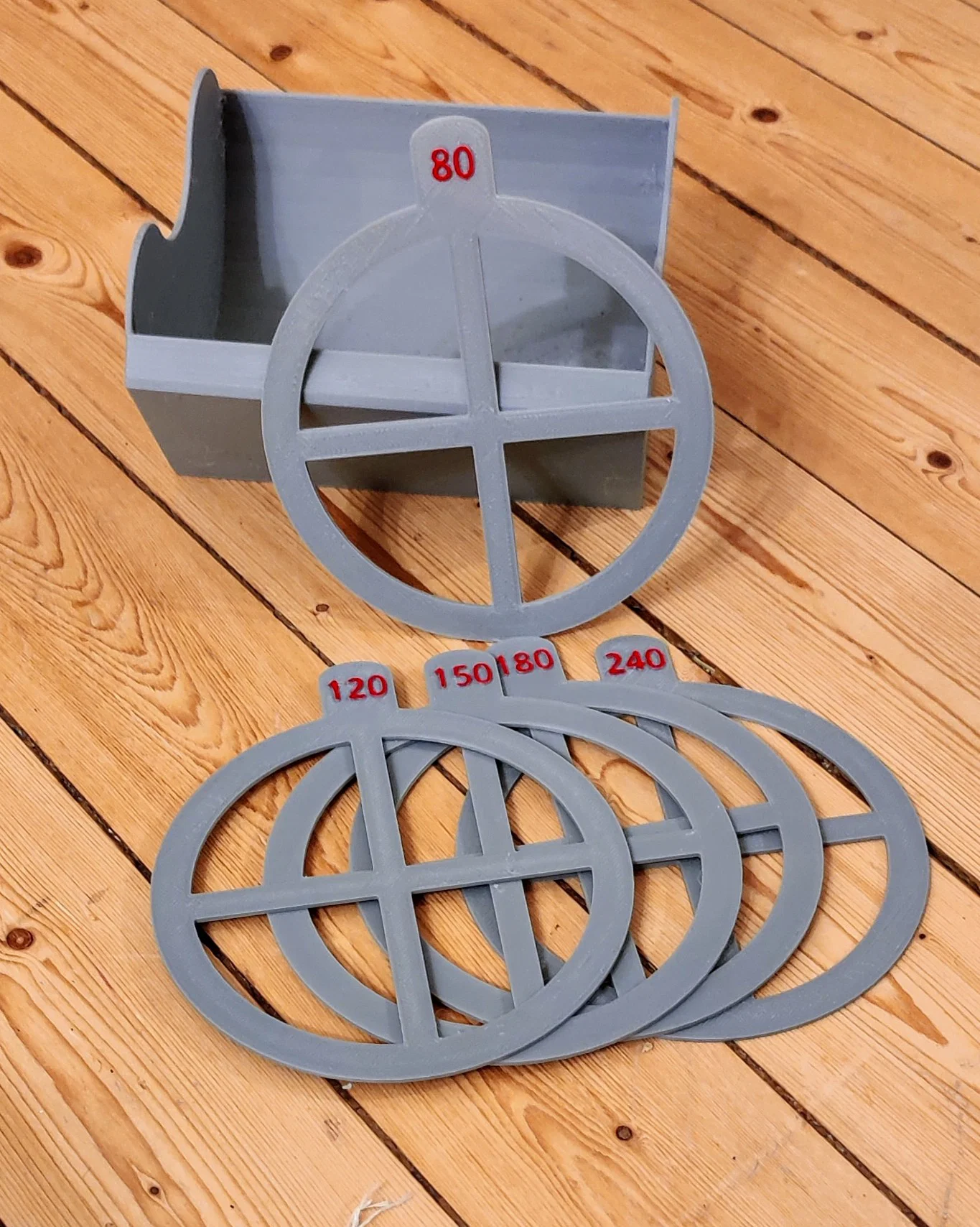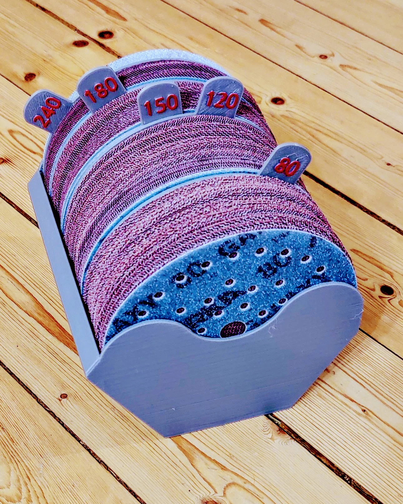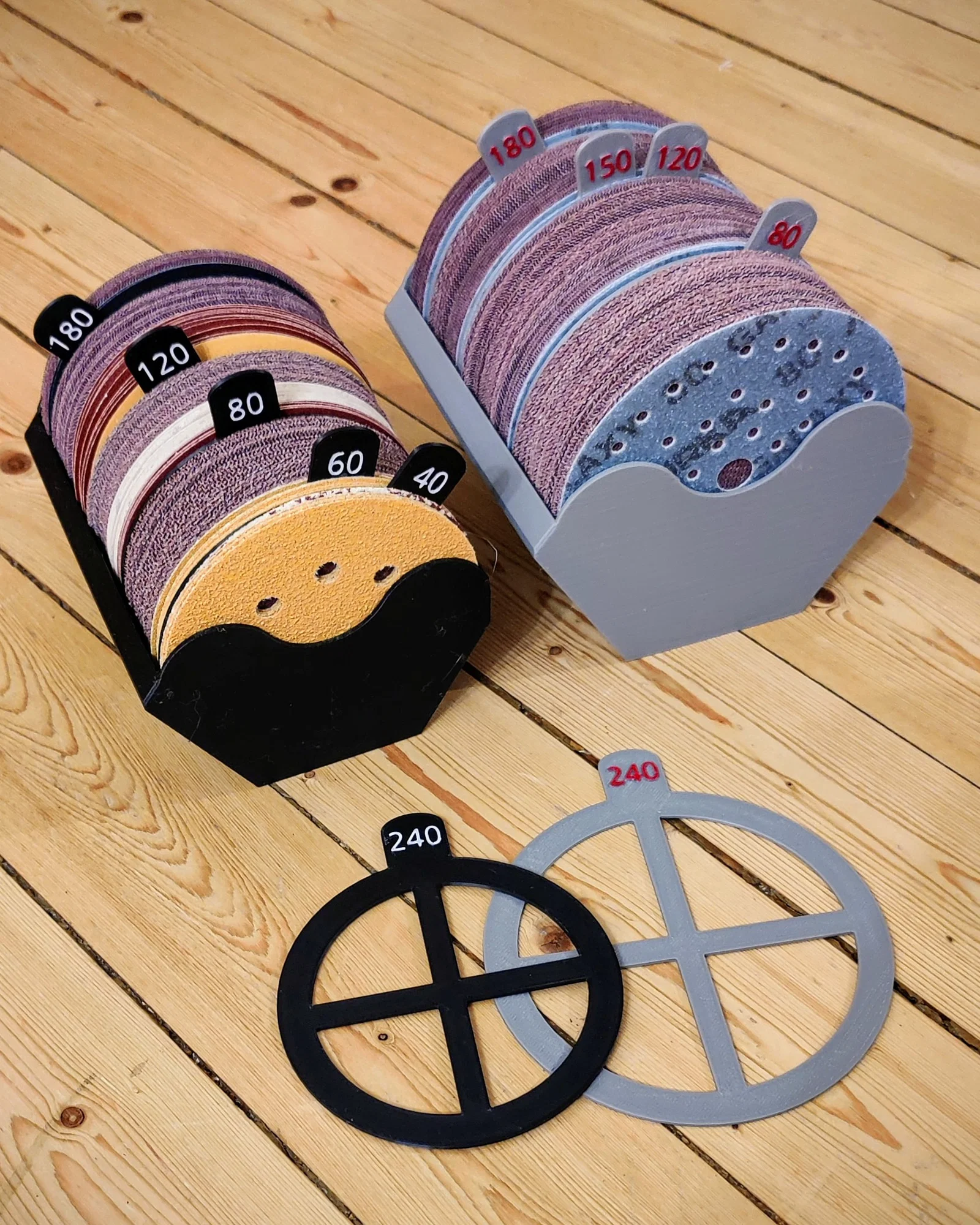 Đây là hộp đựng giấy nhám 125mm & 150mm với các vách ngăn di động giúp bạn sắp xếp gọn gàng hơn trong xưởng. Phần khung không phải do mình thiết kế mà mình đã remix lại một chút cho phù hợp với nhu cầu sử dụng. Mình thêm vào các vách ngăn vì mục đích sử dụng tùy thuộc vào từng công việc cụ thể, nên vách ngăn di động là lựa chọn hợp lý nhất cho mình. Vì mình dùng cả hai loại đĩa 150mm và 125mm nên mình cũng làm luôn phiên bản lớn hơn. Mọi thứ hoạt động rất tốt đối với mình, hy vọng các bạn cũng thấy chúng hữu ích. Mình đã làm sẵn các vách ngăn cho cả loại 125mm và 150mm với các độ nhám: 40, 60, 80, 100, 120, 150, 180, 200, 220, 240, 320, 400, 600 và một cái trống để các bạn tự ghi. Nếu mình có bỏ sót độ nhám nào thì nhớ cho mình biết nhé!