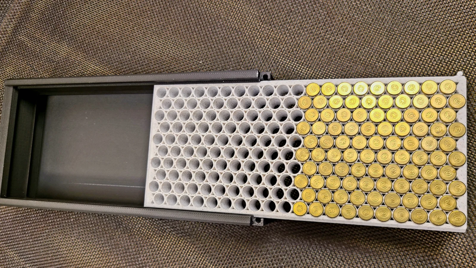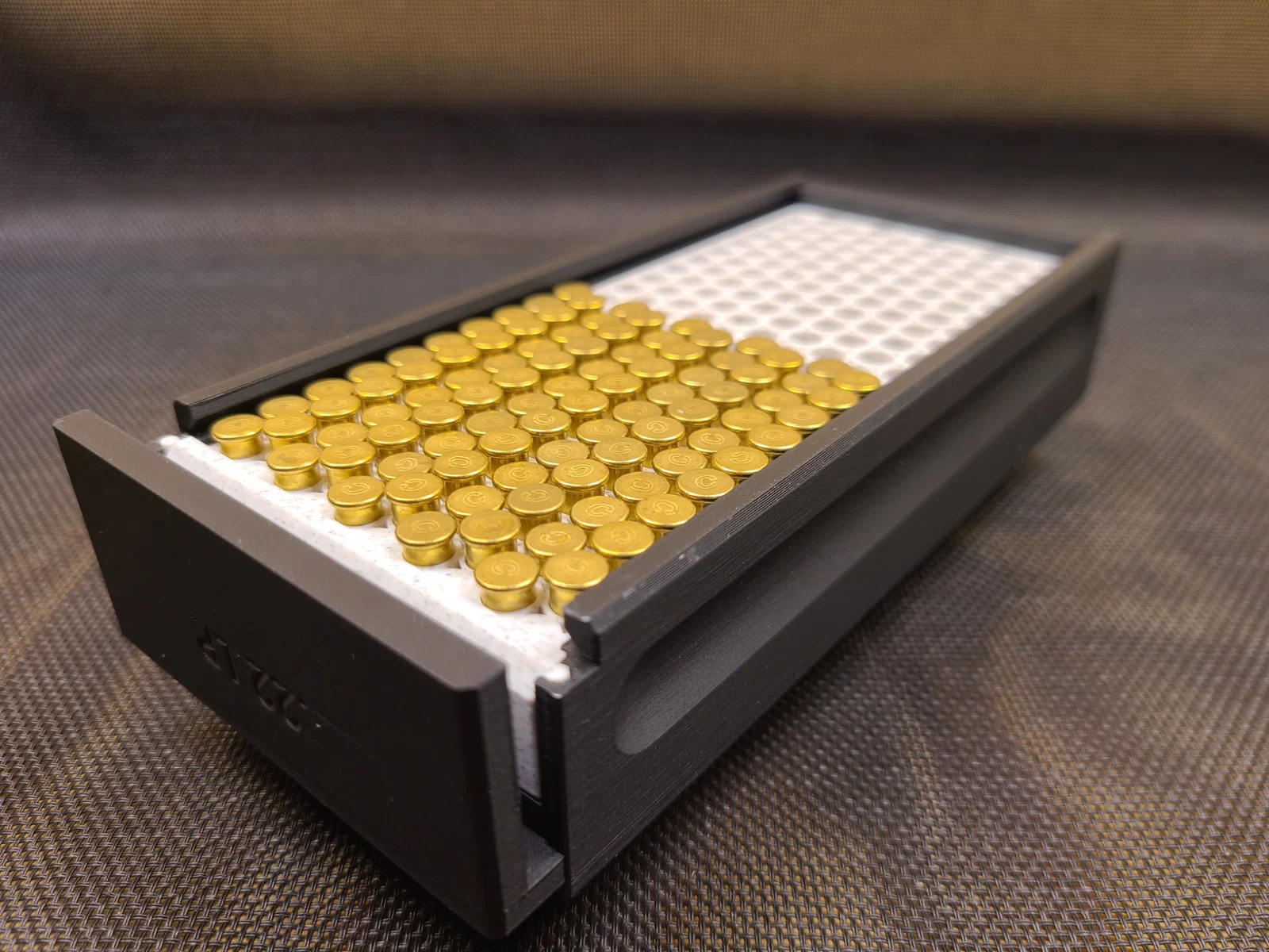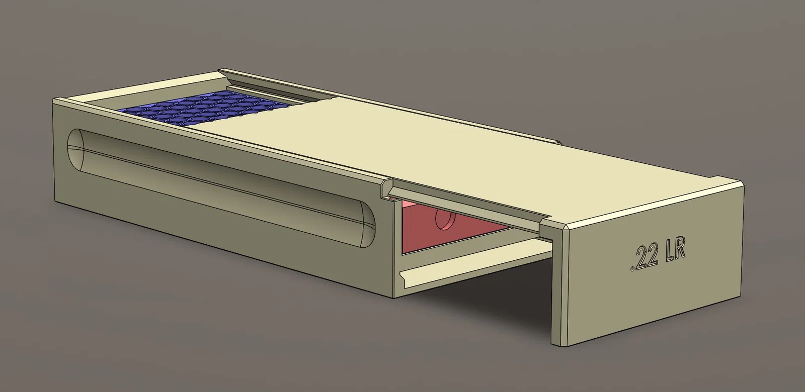 - Thiết kế module: Cho phép thay thế khay bên trong để phù hợp với các loại đạn .22 khác mà không cần in lại toàn bộ hộp.