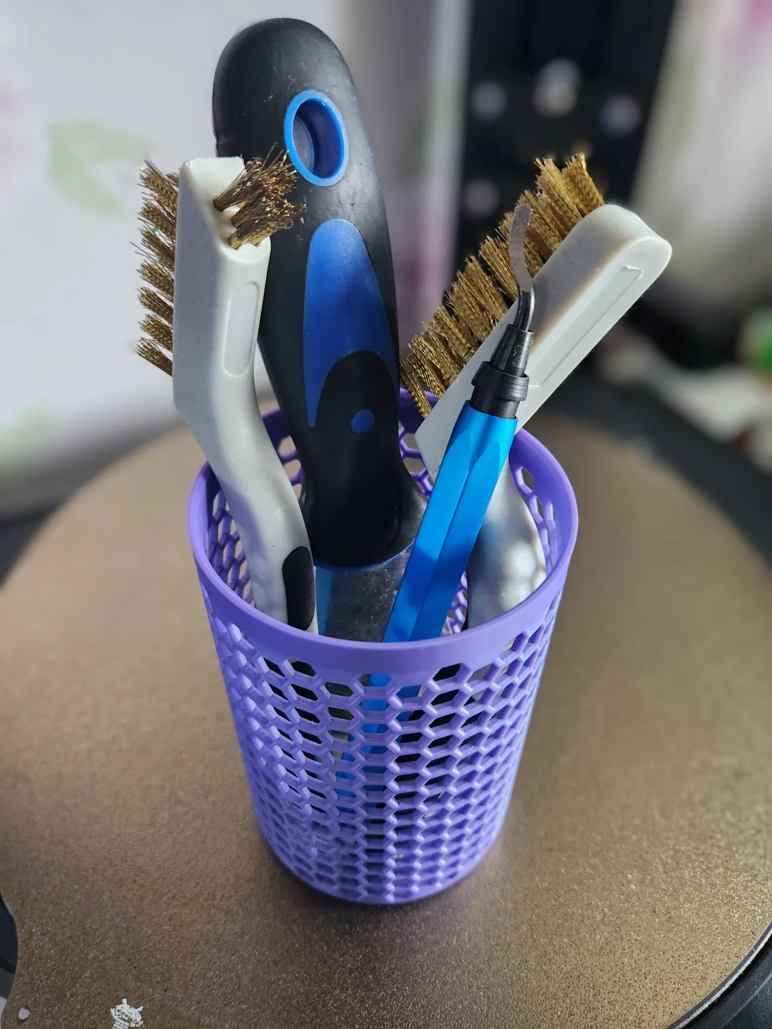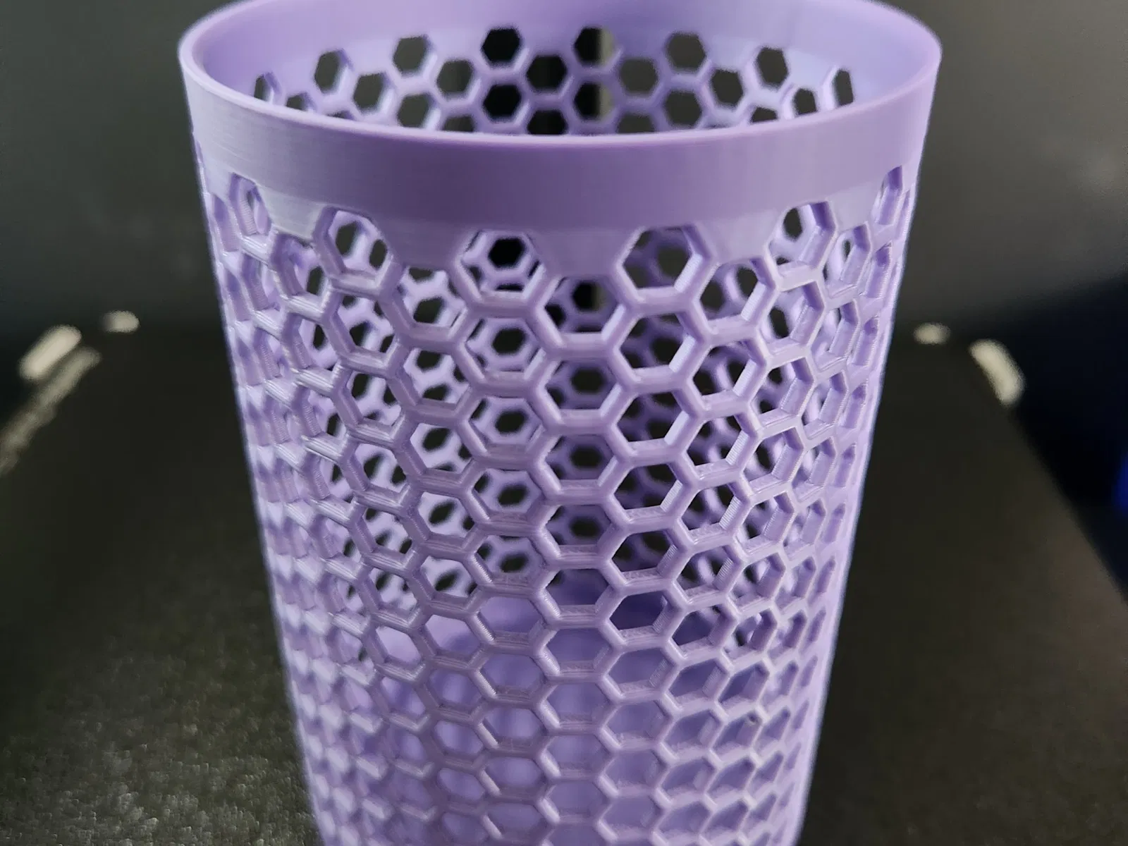 Một cây bút tròn và người giữ phụ kiện với mẫu hình lục giác để lưu trữ đồ đạc
