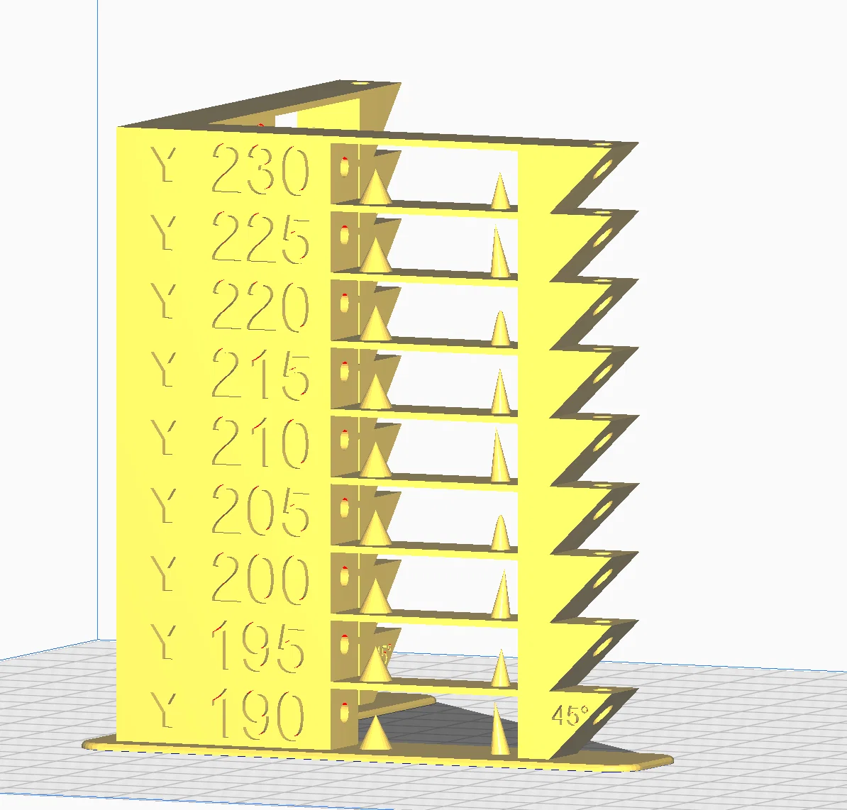 Đây là mẫu tháp nhiệt độ tất cả-trong-một cho PLA/PLA+ lấy cảm hứng từ Tronnic. Mẫu này được bổ sung các ký tự X và Y để kiểm tra hiện tượng ghosting/ringing ở mỗi mức nhiệt, giúp bạn cân chỉnh máy in chính xác và hiệu quả hơn.