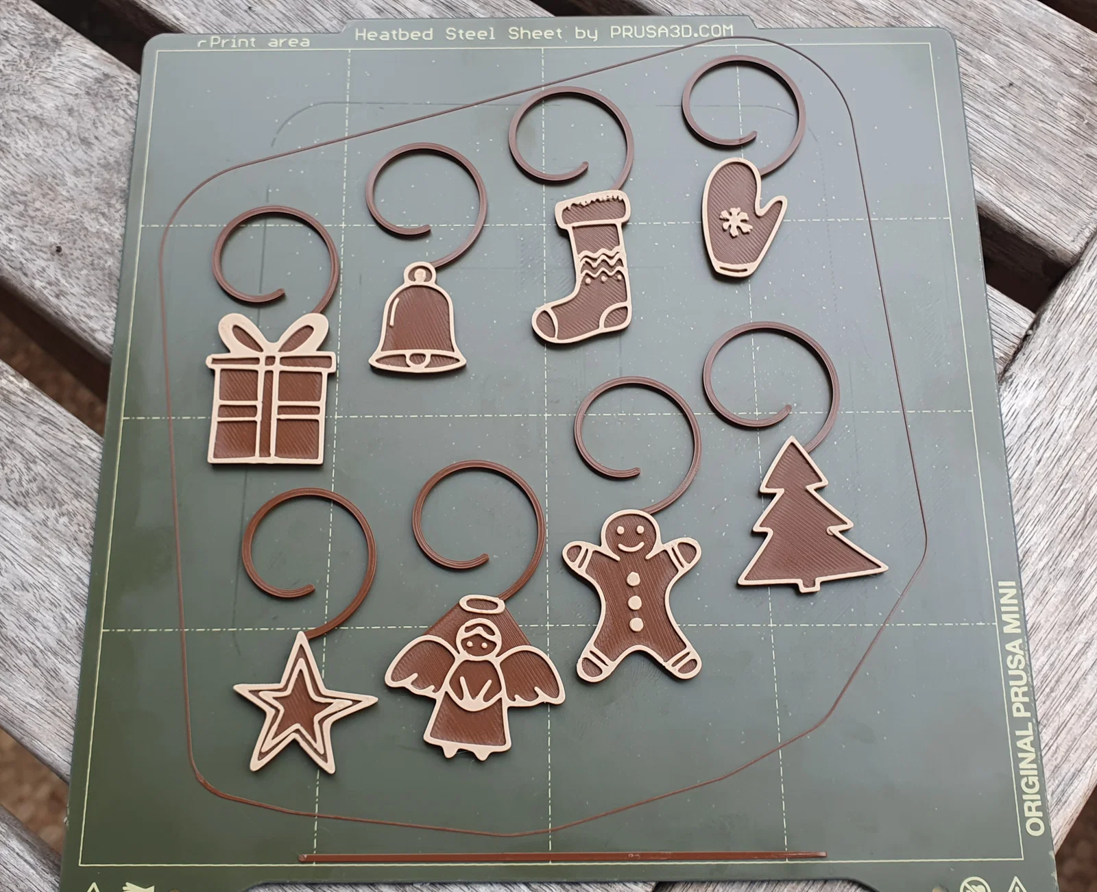 Vợ mình nhờ in mấy cái thẻ đánh dấu ly để dùng cho dịp Giáng sinh và tụi mình muốn một kiểu gì đó khác biệt so với những mẫu có sẵn trên mạng. Thế là mình đã tự thiết kế những mẫu này, lấy cảm hứng từ thẻ Giáng sinh của @printinbaby_2089219 và vài mẫu khác mình tìm được trên web. Mình in bằng đầu phun .2 với chiều cao lớp in .2mm trên con Prusa mini và có bật tính năng ironing (là phẳng bề mặt) vì một vài khe hở khá nhỏ. Mình rất thích tính năng mới của Prusa Slicer giúp tự động nhận diện logo/kí hiệu và đánh dấu vị trí đổi màu rất tiện. Chúc mọi người in vui vẻ và nhớ để lại một like cho mình nha. Chúc mừng Giáng sinh!