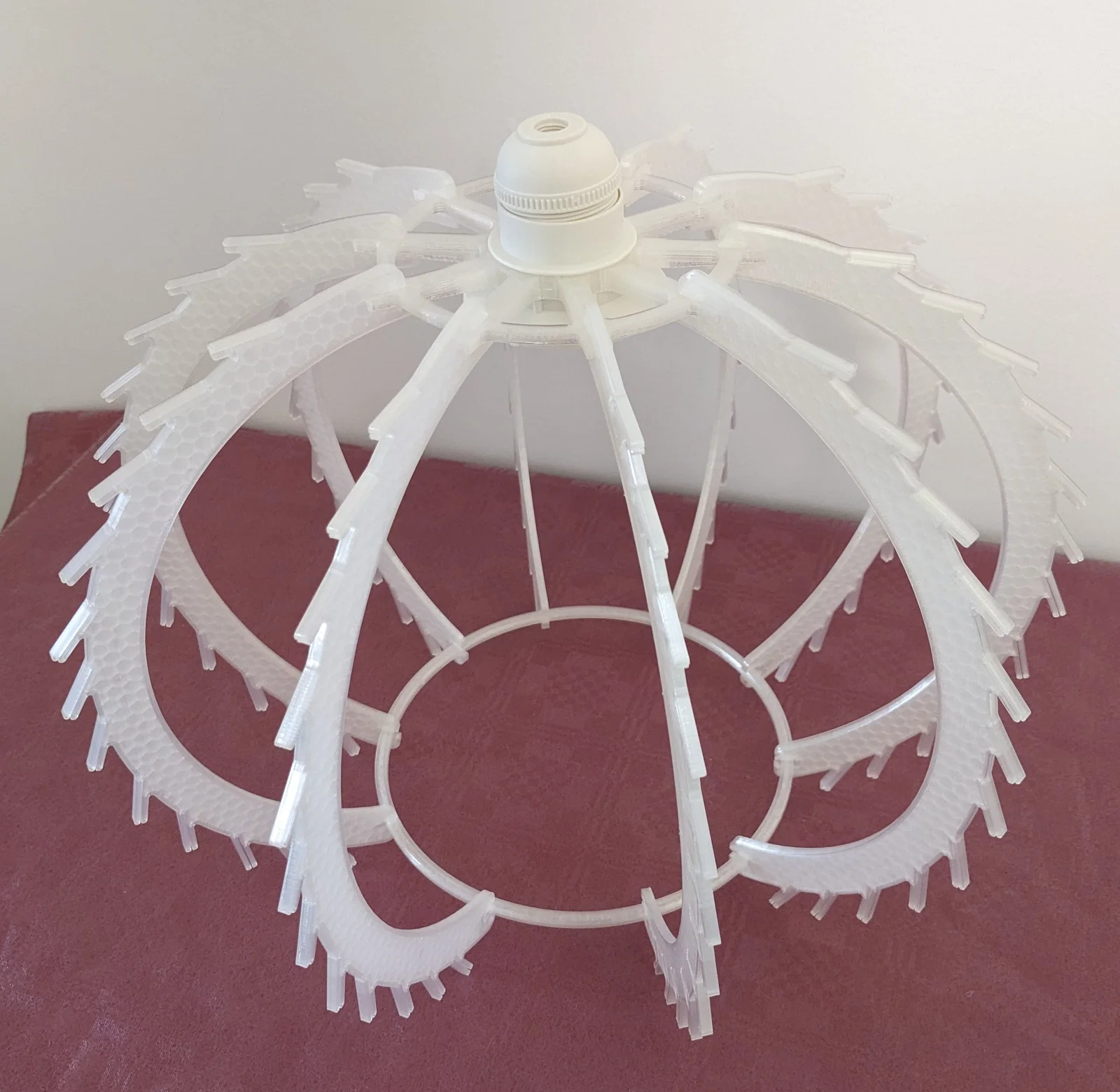 Việc lắp ráp mẫu đèn này khá thú vị, giống như bạn đang tự tay tạo ra một tác phẩm nghệ thuật. Khung đèn được thiết kế để chứa vừa vặn các bộ phận đui đèn tiêu chuẩn, giúp việc lắp đặt bóng đèn trở nên đơn giản hơn bao giờ hết. Nhờ cấu trúc phân lớp thông minh, ánh sáng sẽ tỏa ra dịu nhẹ, không gây chói mắt, rất phù hợp để làm đèn ngủ hoặc đèn decor buổi tối.