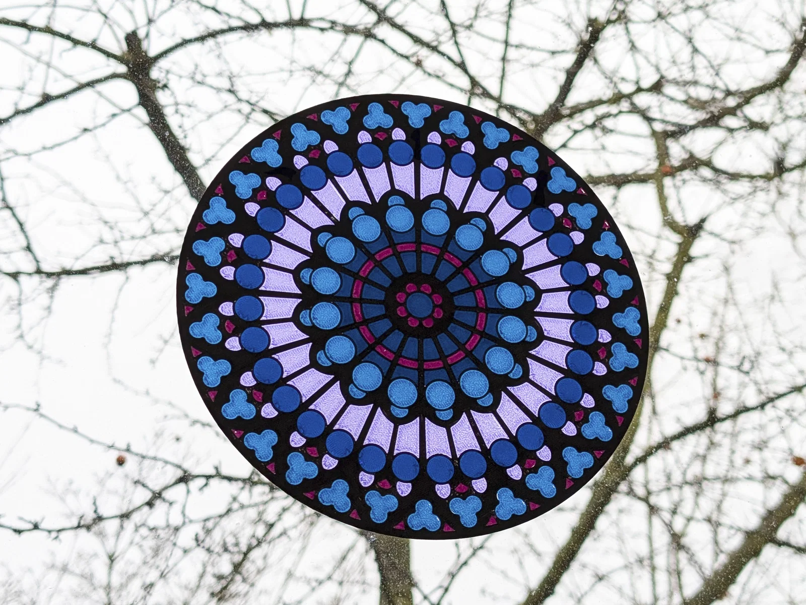 Mẫu in này tái hiện lại cửa sổ hoa hồng phía Tây của nhà thờ Đức Bà Paris dưới dạng đồ trang trí giả kính màu (stained glass). Bạn có thể gắn trực tiếp lên kính cửa sổ hoặc dùng làm vật treo trang trí rất xinh ✨