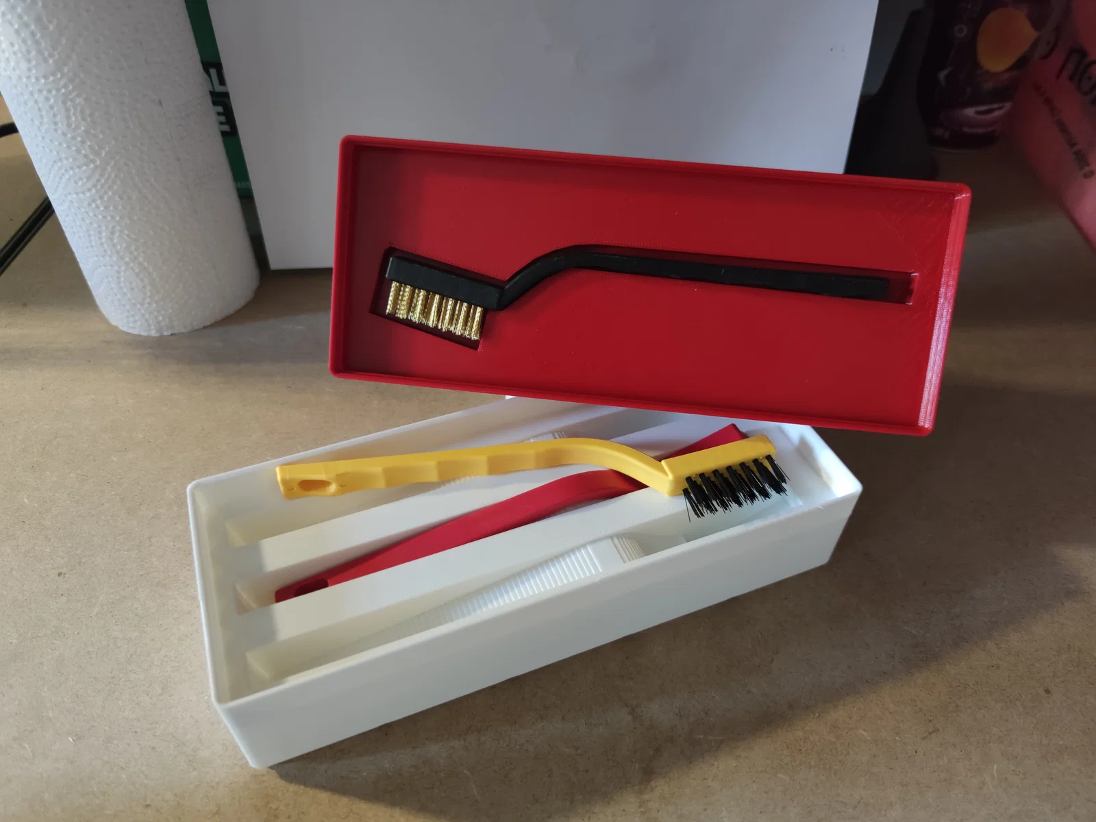 Bộ giá đỡ tiện lợi cho hệ thống Gridfinity, được thiết kế chuyên biệt để giữ các loại cọ mini. Sản phẩm bao gồm tùy chọn chứa một cọ đơn hoặc bộ ba cọ, giúp không gian làm việc của bạn gọn gàng và ngăn nắp hơn.