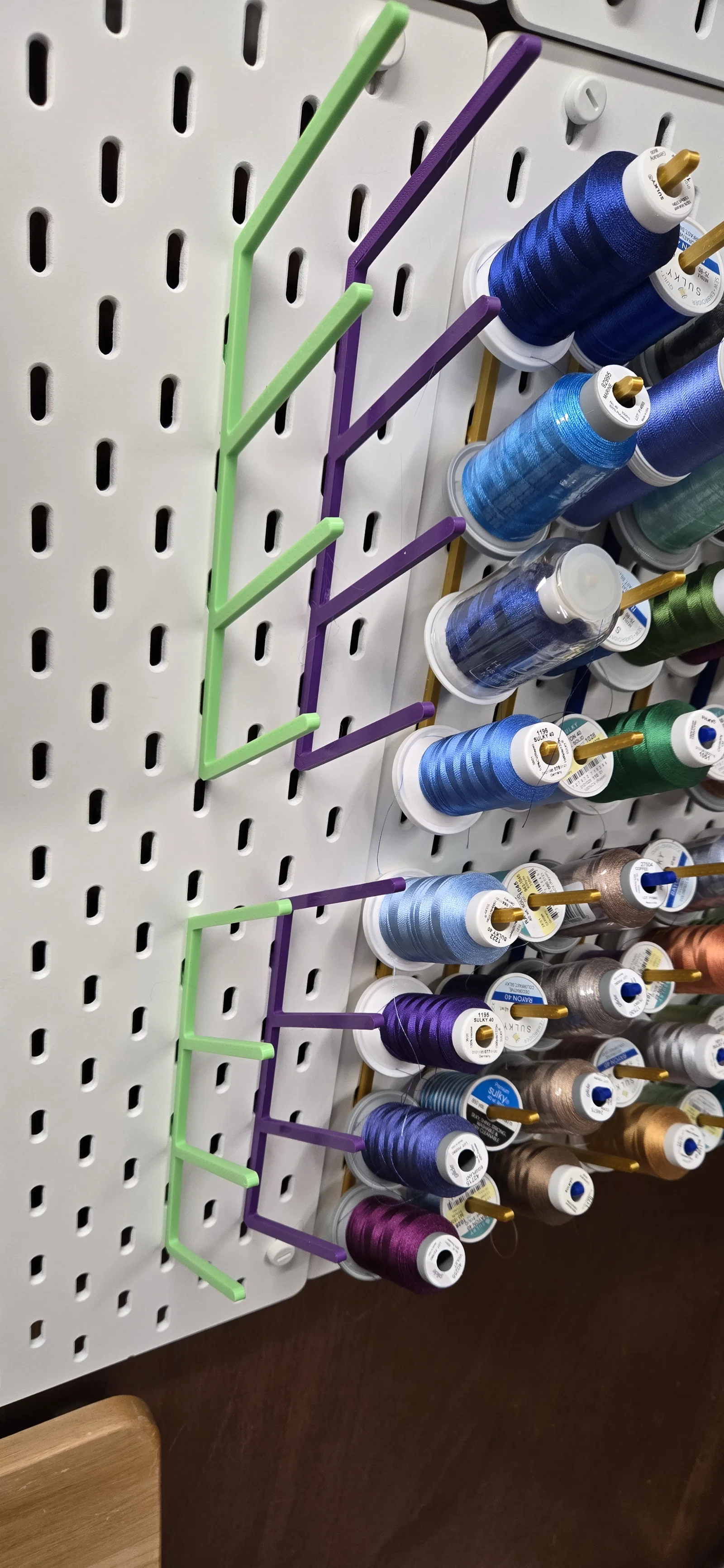 Bạn là một người đam mê may vá, thêu thùa và đang sở hữu bảng treo tường Skadis tiện dụng? Nếu đang gặp khó khăn trong việc sắp xếp các cuộn chỉ cỡ lớn sao cho gọn gàng và dễ lấy khi cần, thì phụ kiện in 3D này chính là giải pháp hoàn hảo dành cho bạn. Giá treo được thiết kế đặc biệt để tối ưu hóa không gian trên bảng, giúp khu vực làm việc của bạn trở nên chuyên nghiệp và ngăn nắp hơn bao giờ hết.