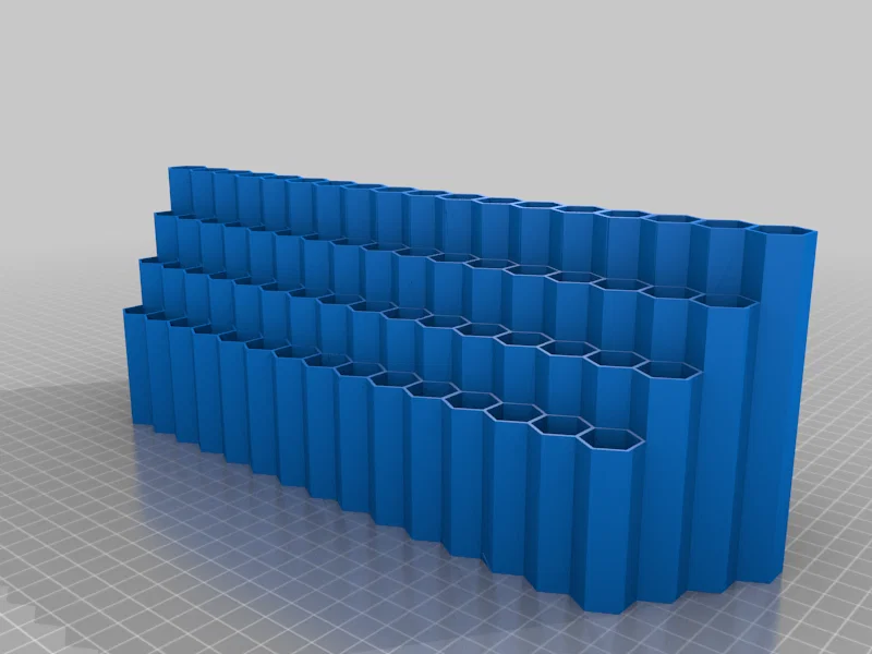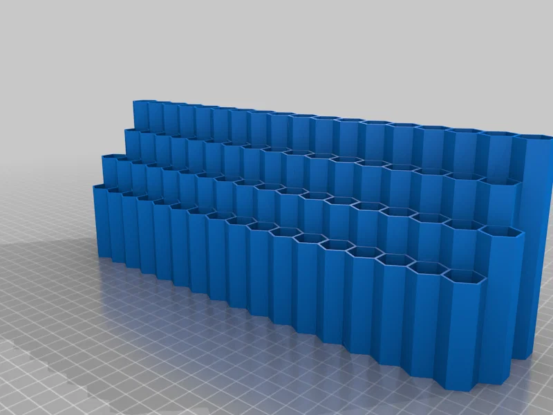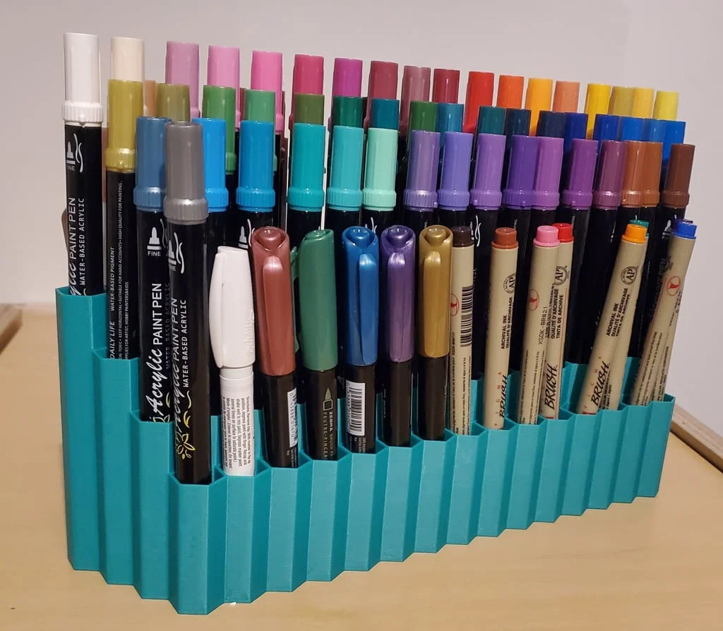 Đây là mẫu giá đỡ bút/bút đánh dấu (marker), mẫu trong hình có thể chứa tới 114 cây bút. Chiều cao của "sàn" mỗi hàng được tinh chỉnh để các cây bút nằm ở các độ cao khác nhau, giúp mình dễ dàng nhìn thấy và chọn màu hơn.