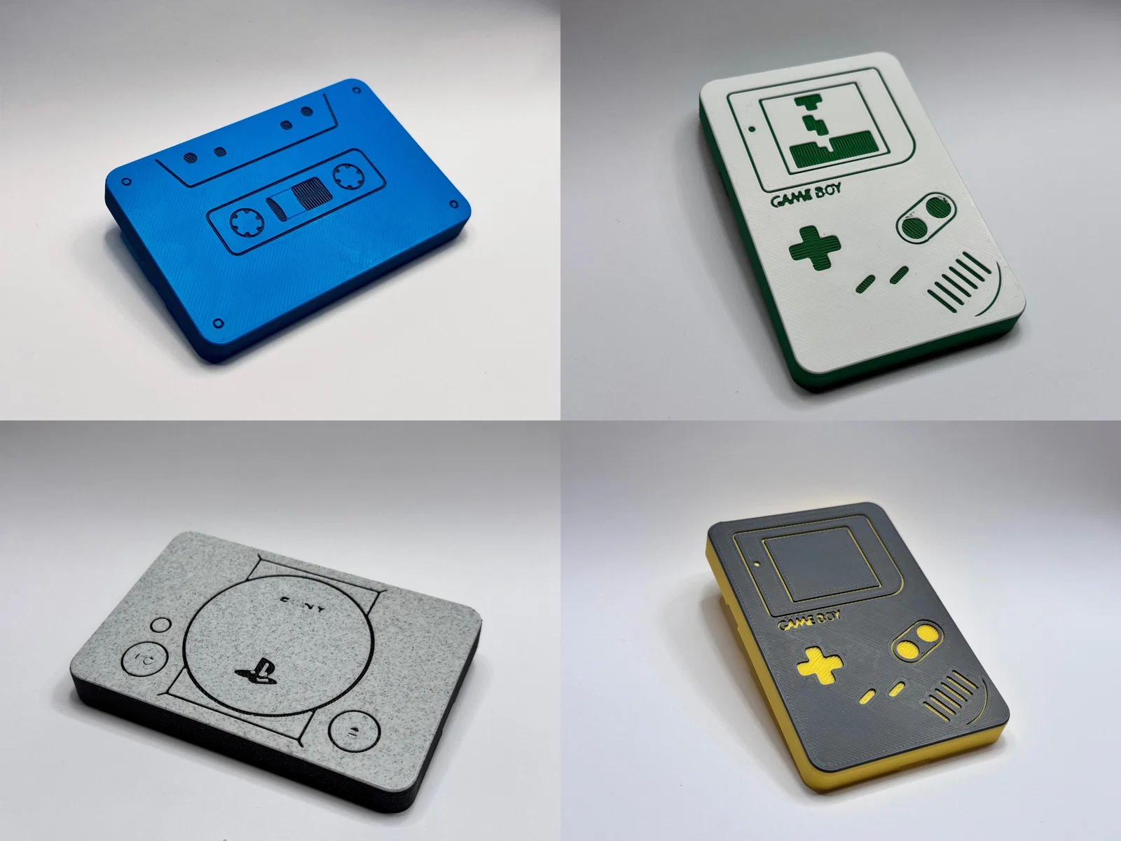 Đây là bản remix từ thiết kế hộp đựng thẻ quà tặng tuyệt vời của bce.gatien_. Mọi người hãy ghé xem thiết kế gốc cũng như các kích thước hộp quà khác trên trang của tác giả nhé. Hãy cá nhân hóa những chiếc thẻ quà tặng thông thường trở nên đặc biệt hơn dành tặng người thân yêu với các hộp đựng thẻ quà tặng theo phong cách retro này! Các mẫu thiết kế được lấy cảm hứng từ Game Boy Classic của Nintendo (có và không có trò chơi kiểu Tetris trên màn hình), PlayStation 1 của Sony và băng cassette cổ điển. Giống như thiết kế gốc, bạn có thể in mẫu này mà không cần thiết lập AMS/MMU và cũng không cần dùng keo dán. Nếu bạn muốn các chi tiết nổi bật hơn như trong hình, mình khuyên nên thay đổi thủ công sợi nhựa sau lớp thứ 3. Hãy chọn các màu sắc tương phản để đạt hiệu ứng tốt nhất nhé. Nếu bạn chỉ muốn dùng phong cách retro cho phần nắp hộp, mình cũng đã đính kèm phiên bản hộp trơn nguyên bản ở bên dưới. Chúc mọi người in ấn vui vẻ! Mình rất mong được thấy thành quả của các bạn! Tuyên bố miễn trừ trách nhiệm pháp lý: Mẫu thiết kế này là sản phẩm của người hâm mộ, lấy cảm hứng từ tính thẩm mỹ của PlayStation và Game Boy, không phải là sản phẩm chính thức từ Sony Interactive Entertainment hoặc Nintendo.