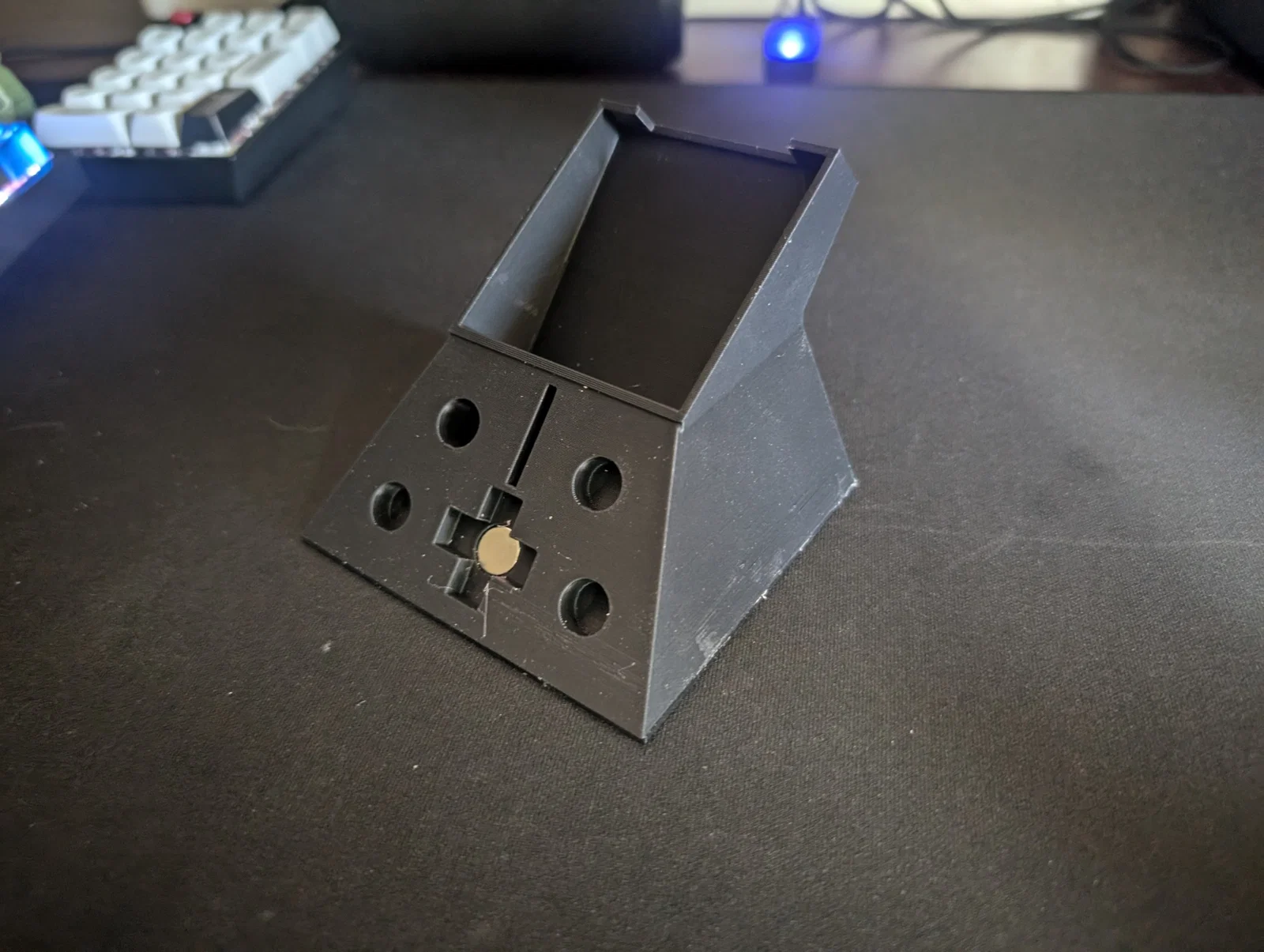 Bên dưới khe cắm D-pad có một lỗ nhỏ để bạn gắn nam châm 10x2mm nếu muốn. Mình thấy có nam châm thì nó giữ D-pad tròn chắc hơn, nhưng không có thì vẫn dùng bình thường nhé.