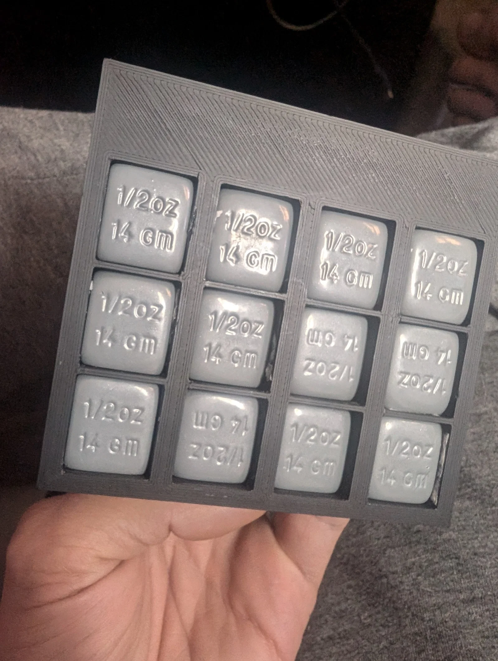 Mình đã thiết kế các khe để bạn có thể thêm tạ (loại chì dán bánh xe tối đa 1/2 oz) nhằm giúp đế đứng vững hơn. Mình đã sử dụng loại tạ này.