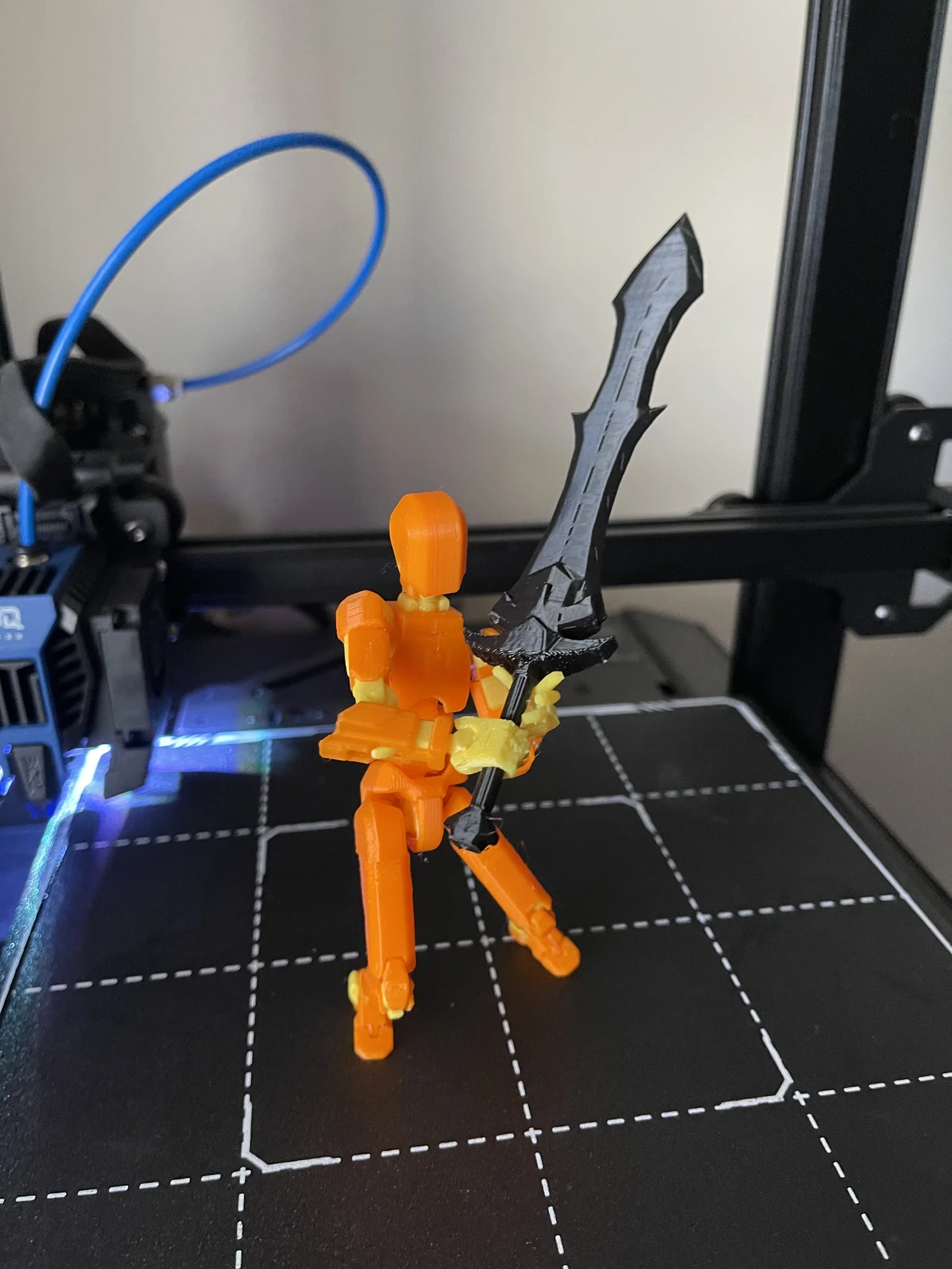 - Chất liệu: Nhựa PLA là lựa chọn tốt nhất vì độ cứng cáp vừa phải, giúp kiếm khó bị cong vênh.