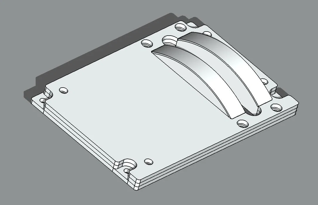 Cung đo đòn bẩy được thiết kế để in bằng nhựa PETG trong suốt, infill 100% rồi dán cố định để làm sáng ký hiệu vị trí. Bề mặt trên nên được che chắn kỹ trước khi sơn. Các lỗ ở mặt dưới dùng để gắn đèn LED trắng ấm 3mm. Phần cung có một rãnh nhỏ để đặt ký hiệu.