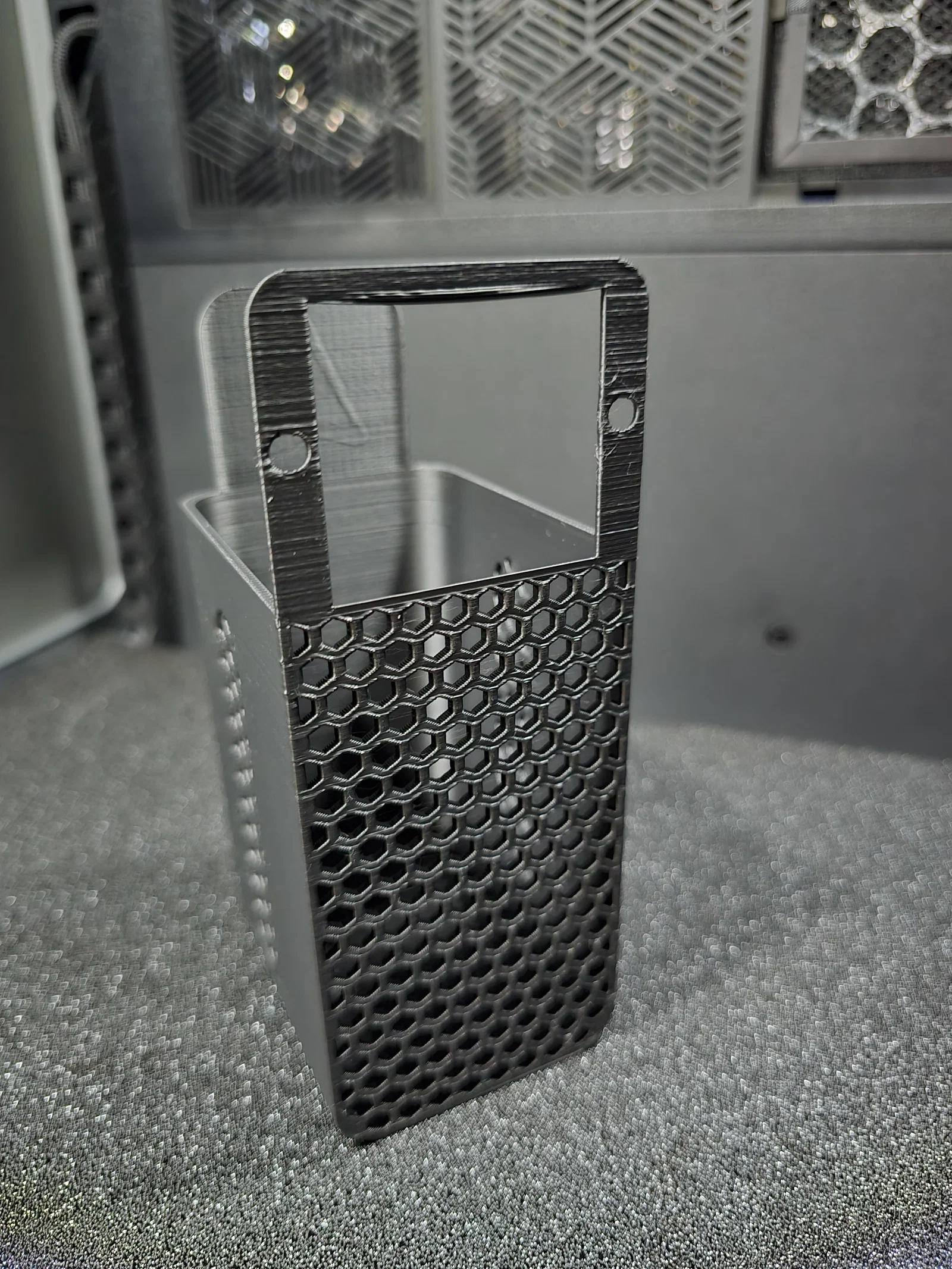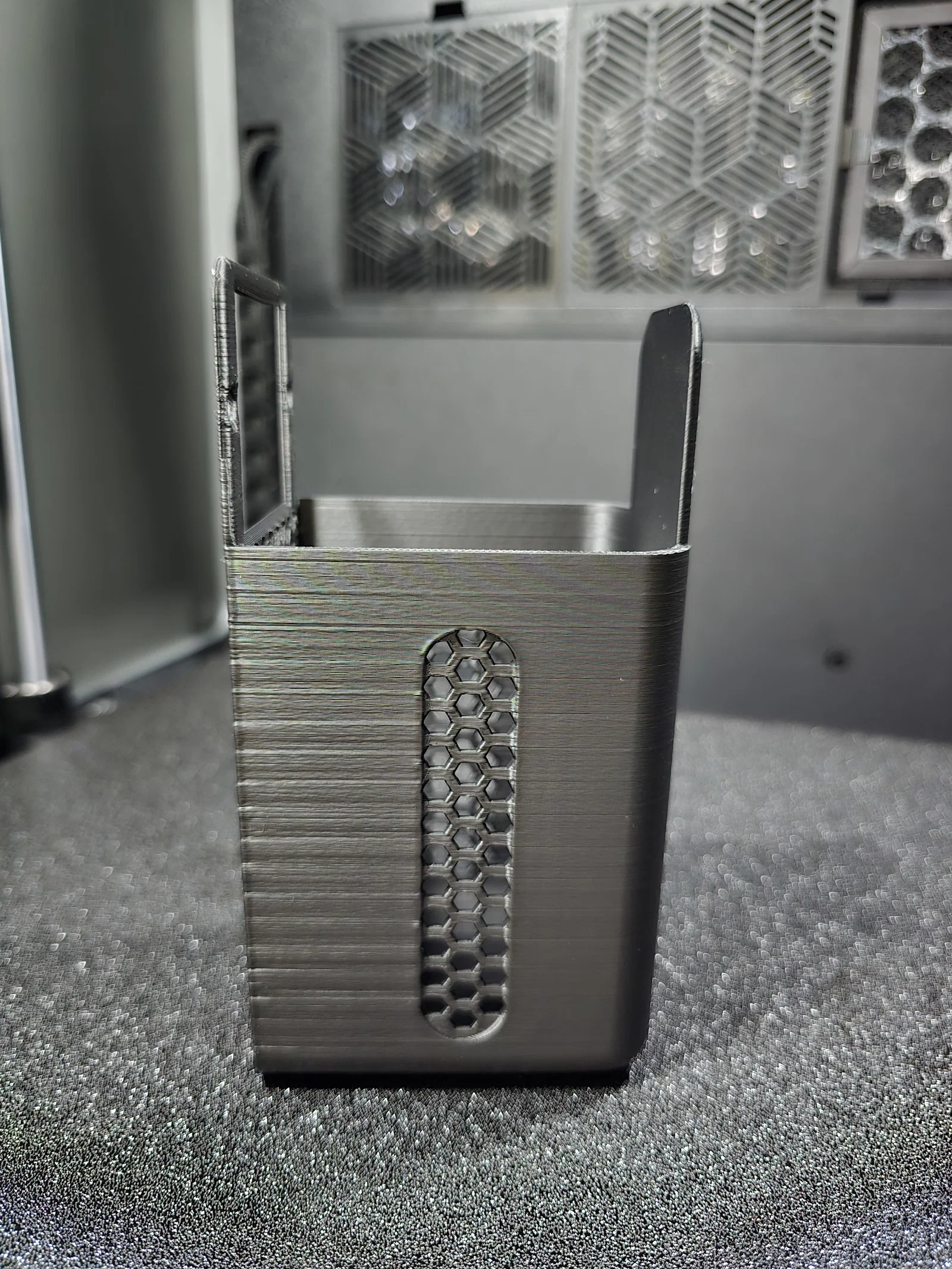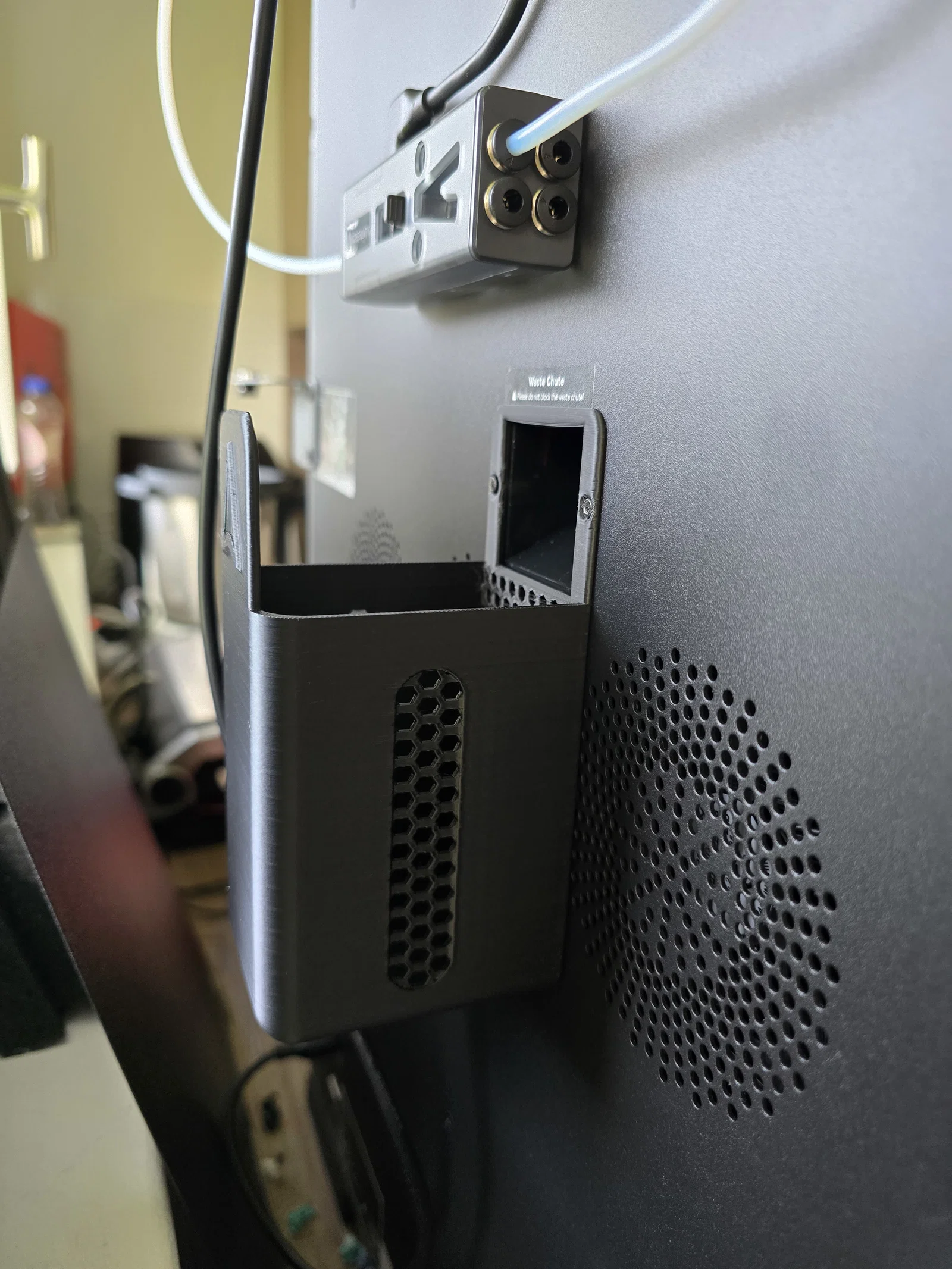 Thùng chứa rác thải thiết kế thông minh, có khe thông gió dành cho Creality K2 Plus. Giúp việc lắp đặt nhanh chóng, không cản trở luồng gió từ quạt phía sau máy, có thể in dễ dàng mà không cần support.