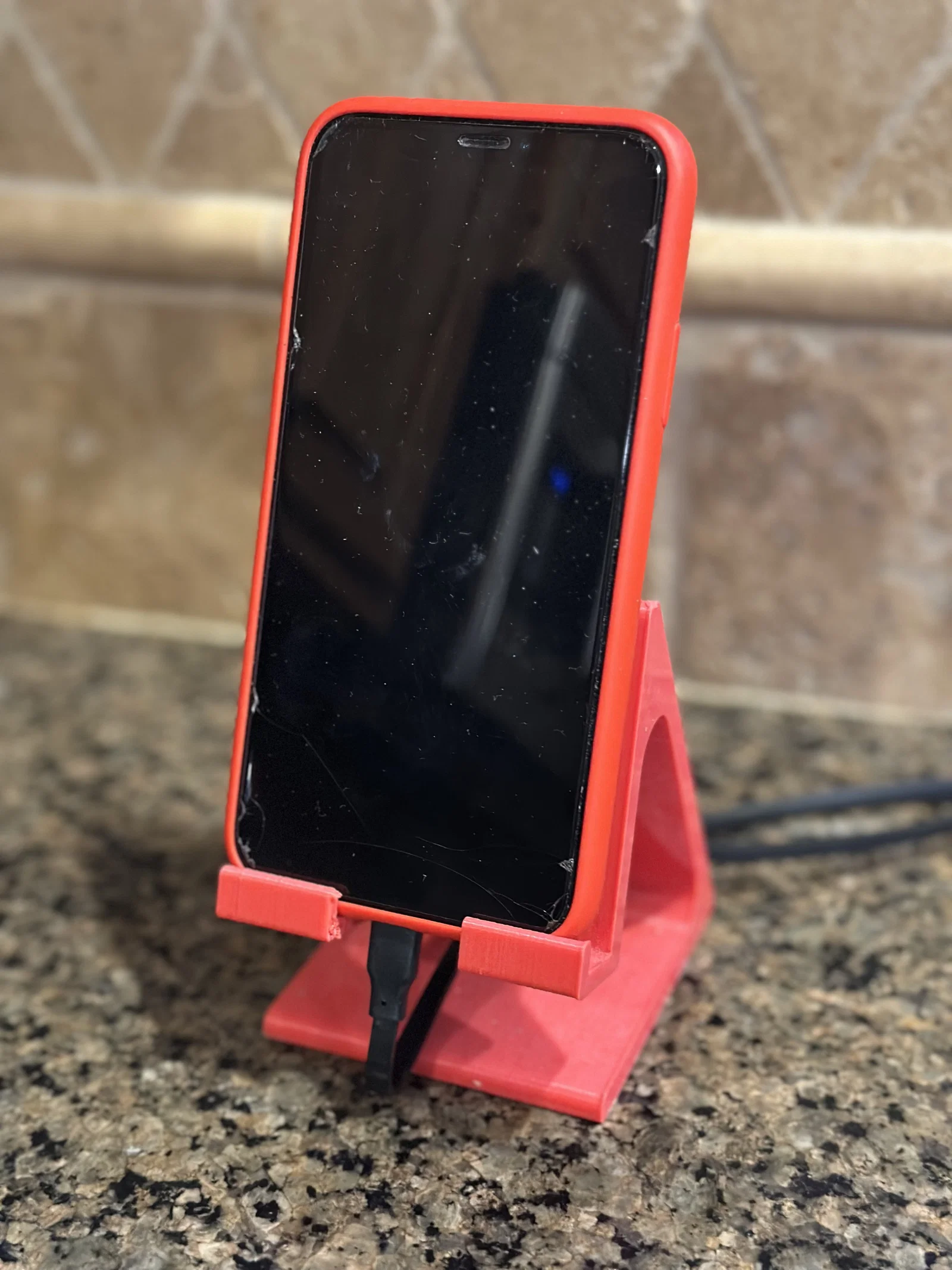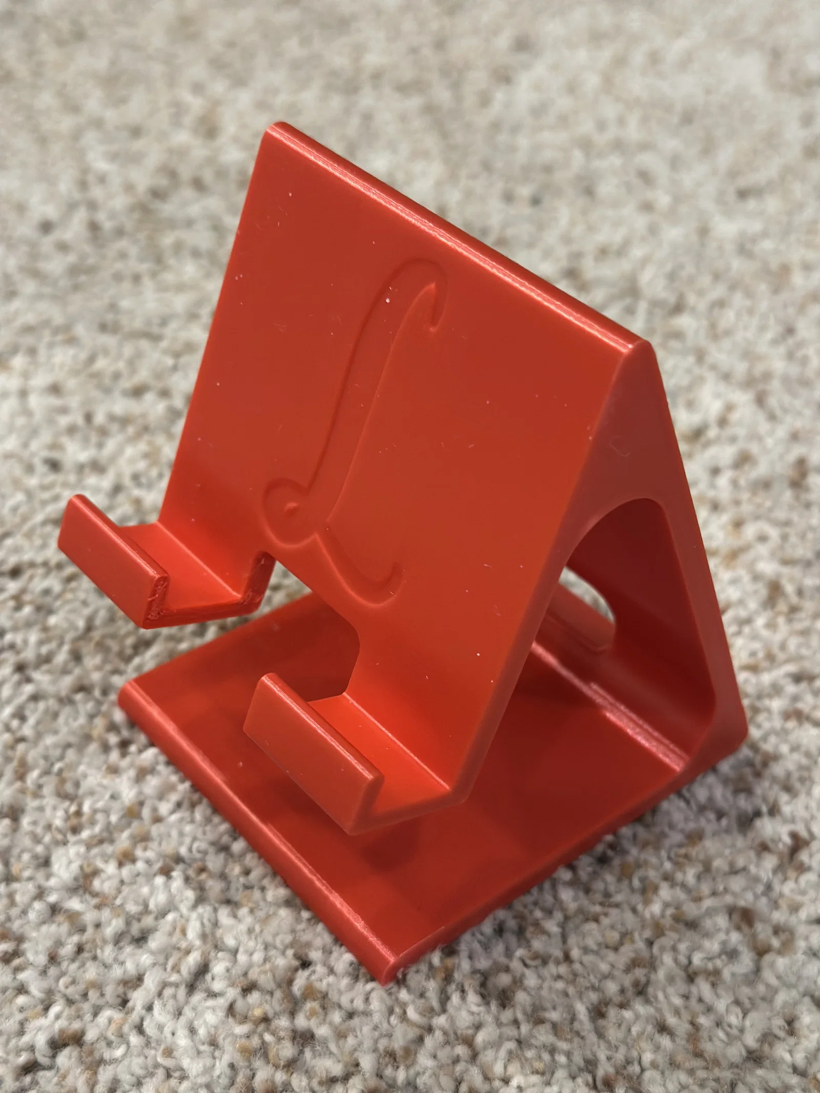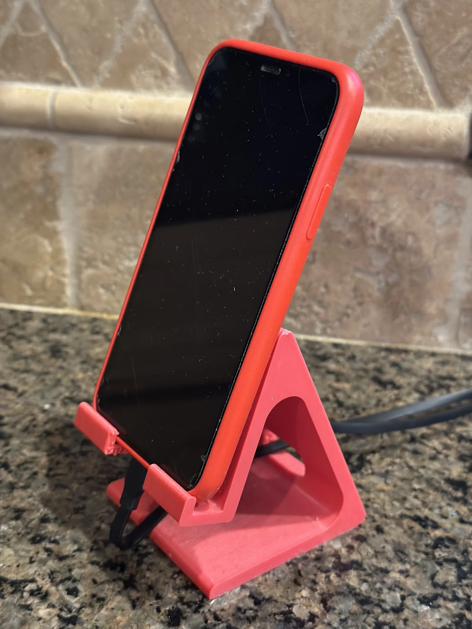 Đây là mẫu giá đỡ điện thoại cực kỳ đơn giản và cũng là loại tốt nhất mà mình từng thử qua. Mình thiết kế mẫu này để bạn có thể vừa cắm sạc vừa đặt máy một cách gọn gàng. Một vài tấm ảnh minh họa có khắc chữ "L" nổi, nhưng file STL đính kèm ở đây là bản trơn không có chữ nha mọi người.