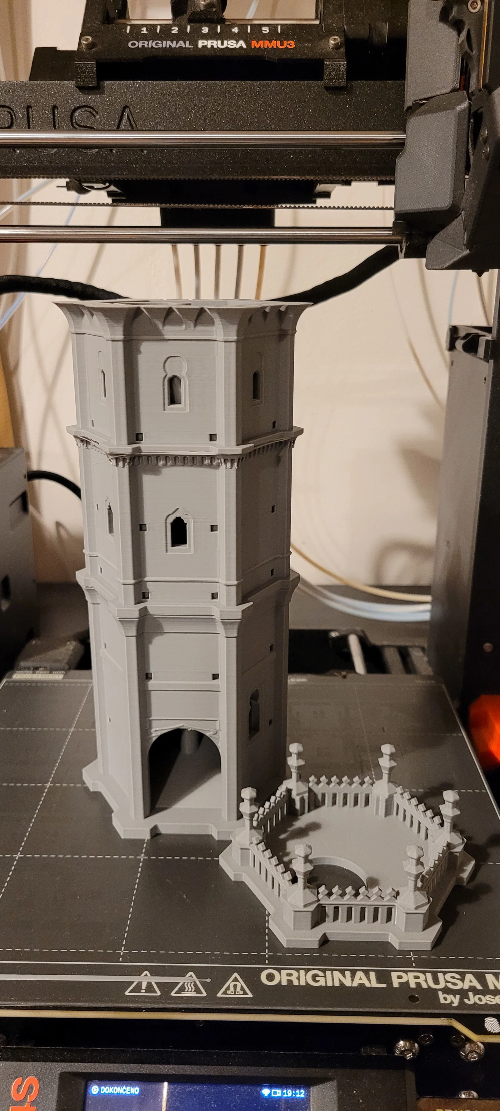 Mô hình tháp đổ xúc xắc lấy cảm hứng từ đài quan sát Slavín. Thiết kế gồm hai phần là tháp và mái, tối ưu để in 3D dễ dàng mà không cần dùng đến vật liệu hỗ trợ (supports).