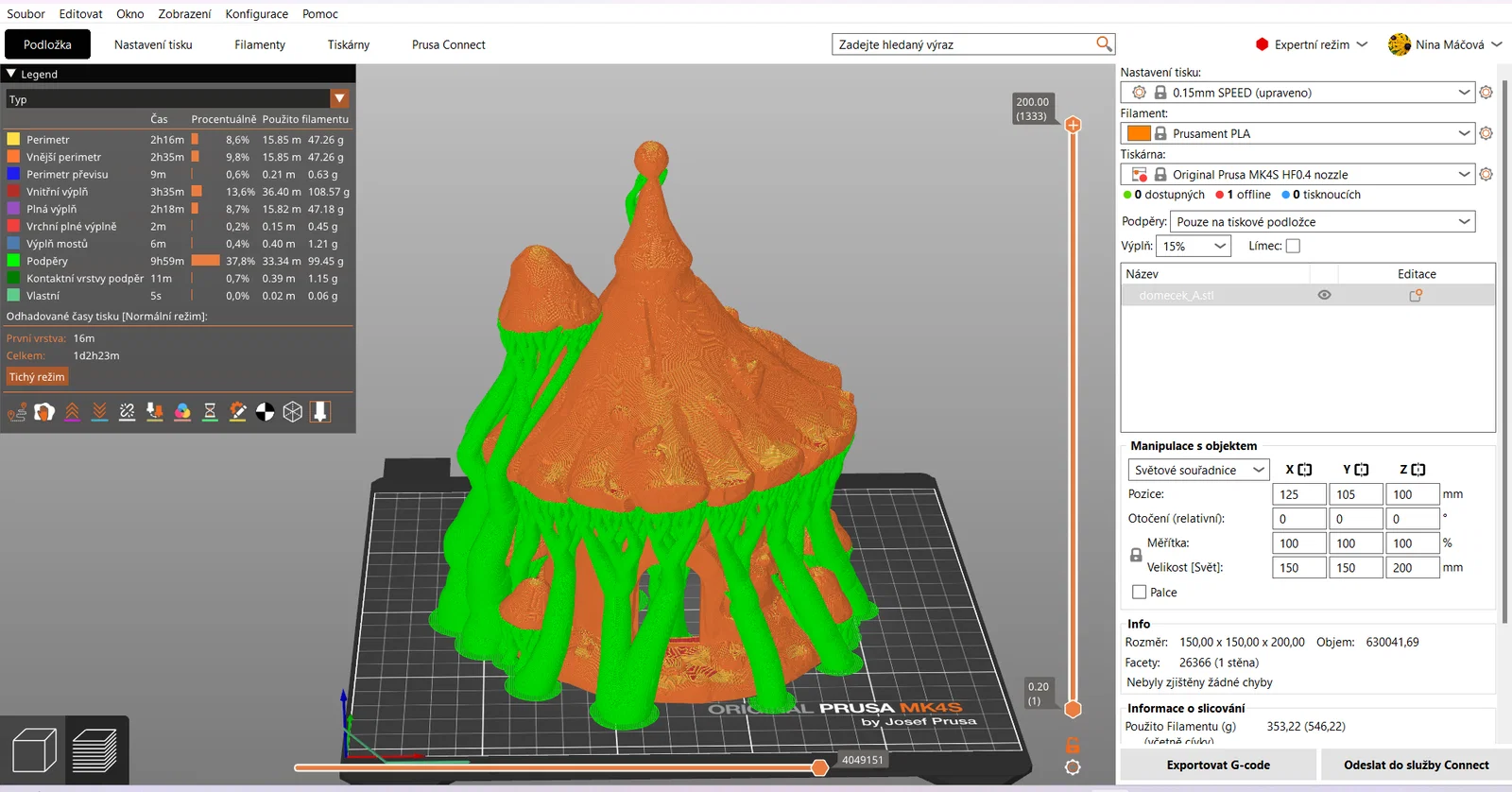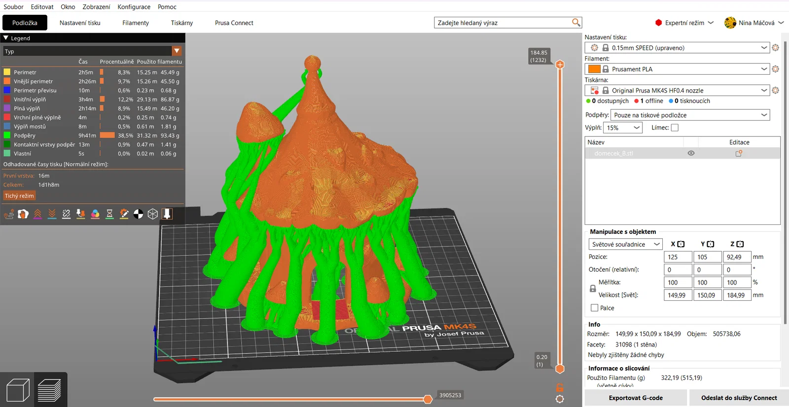- Tốc độ in: Nên in ở tốc độ vừa phải, khoảng 40-50mm/s để các đường nét điêu khắc trên ngôi nhà được sắc nét và đạt chất lượng tốt nhất.