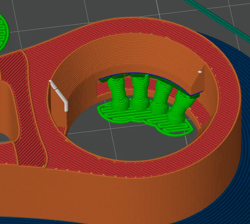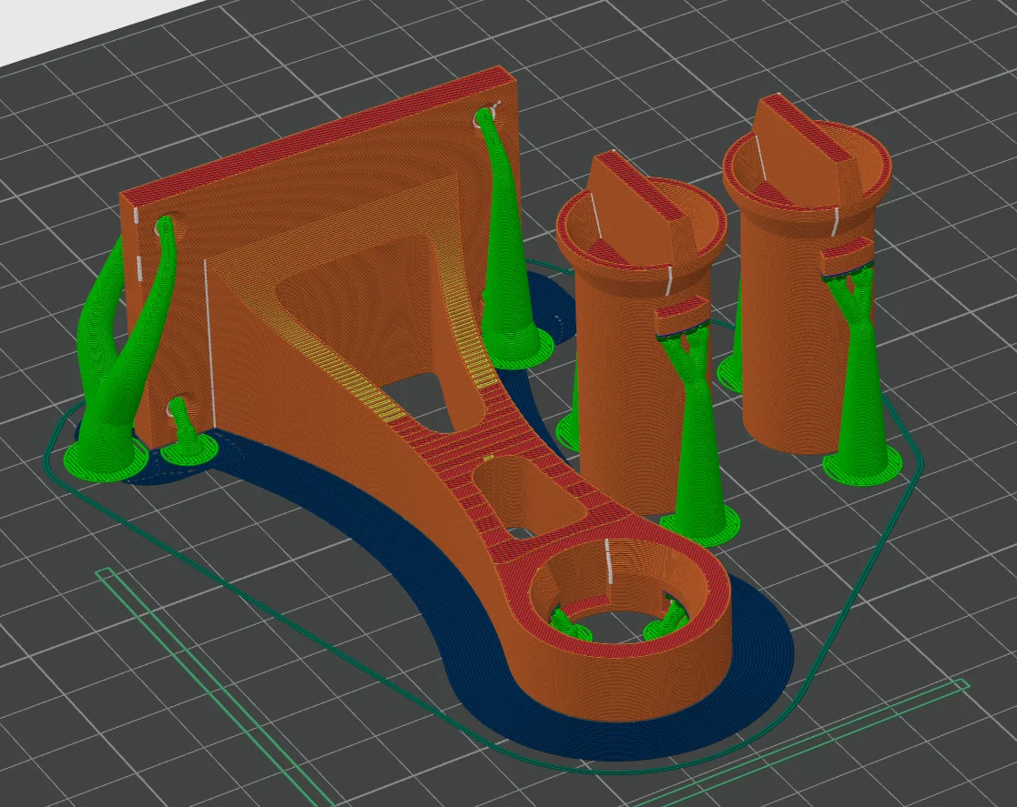 Khuyến khích anh em in cái giá đỡ (bracket) theo tư thế nằm phẳng, chỉ sử dụng tree supports trên build plate thôi nha. Cách này giúp việc tháo support ra khỏi các khe khóa bên trong giá đỡ dễ dàng hơn nhiều. Lưu ý là làm vậy sẽ tốn vật liệu in hơn so với khi không dùng support chỉ trên build plate. Mình có đính kèm ảnh hướng dẫn hướng đặt vật in tối ưu ở dưới đó.