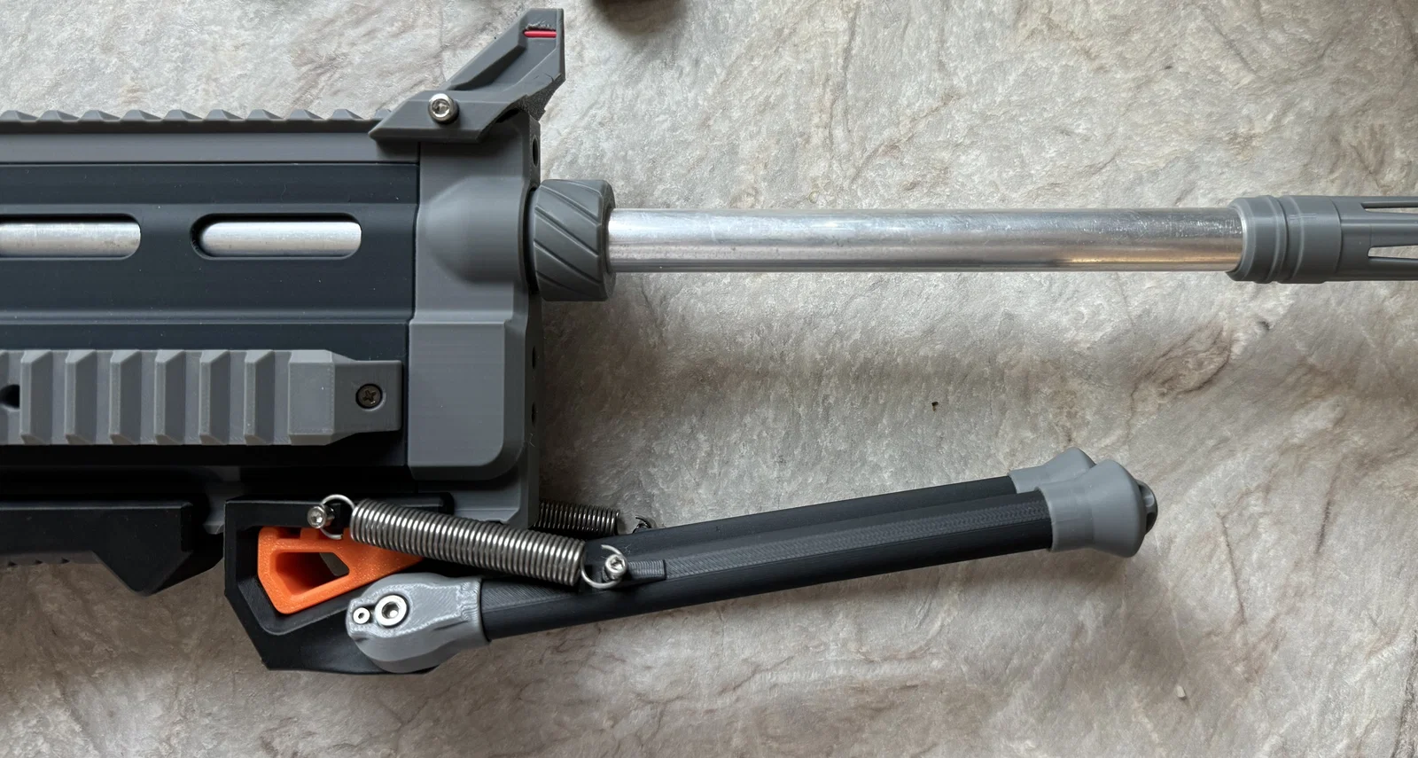 Mình đã thiết kế cái Bipod gập được, có lò xo cho rail Sub-Picatinny này để dùng chơi Nerf.