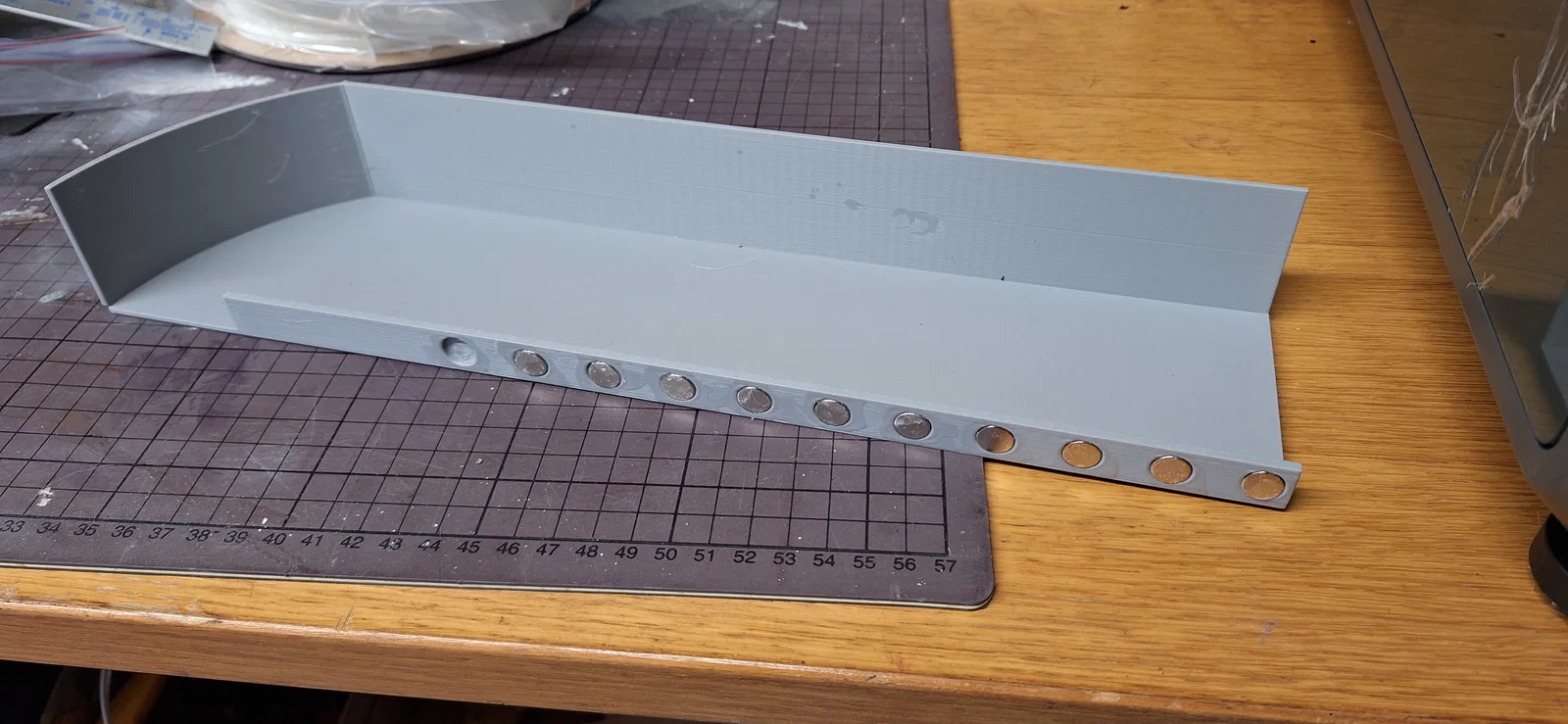 Máng xả nhựa đơn giản dành cho Creality K2 Plus, giúp dẫn nhựa thừa ra phía bên cạnh máy. Thiết kế sử dụng nam châm 10mm x 2mm và có thể tùy chỉnh kích thước thông qua tệp dự án FreeCAD.