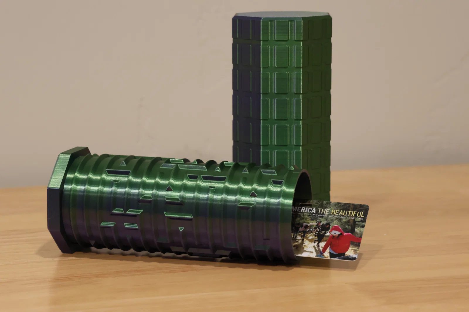 Đường kính bên trong của ống là khoảng 59.6 mm, đủ rộng để chứa thoải mái một chiếc thẻ quà tặng (gift card) tiêu chuẩn. Mình cũng có một phiên bản nhỏ hơn nếu bạn không cần kích thước lớn như vậy.