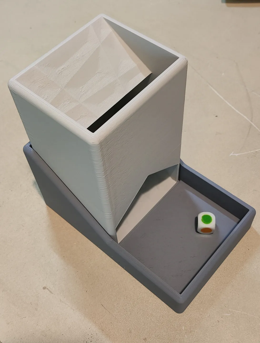 Dùng tháp đổ xúc xắc này để gieo xúc xắc dễ dàng, đồng thời tận dụng làm hộp lưu trữ linh kiện board game tiện lợi trong cùng một sản phẩm in. Thiết kế đã được tối ưu góc cạnh giúp xúc xắc nảy tốt hơn và cầm nắm dễ chịu hơn.