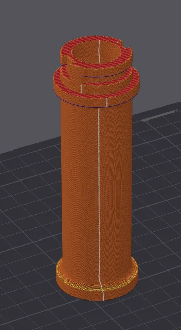 • Hướng in: Đặt đứng theo chiều dọc của trục, sử dụng thêm brim nếu cần để tăng độ bám dính trên bàn in.