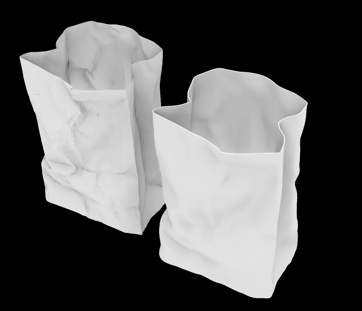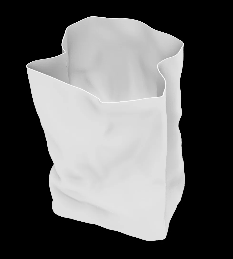 • Thiết kế độc đáo: Hình dáng túi với các nếp nhăn tự nhiên, tạo cảm giác như túi giấy thực tế, rất phù hợp để trang trí hoặc làm đạo cụ chụp ảnh.
