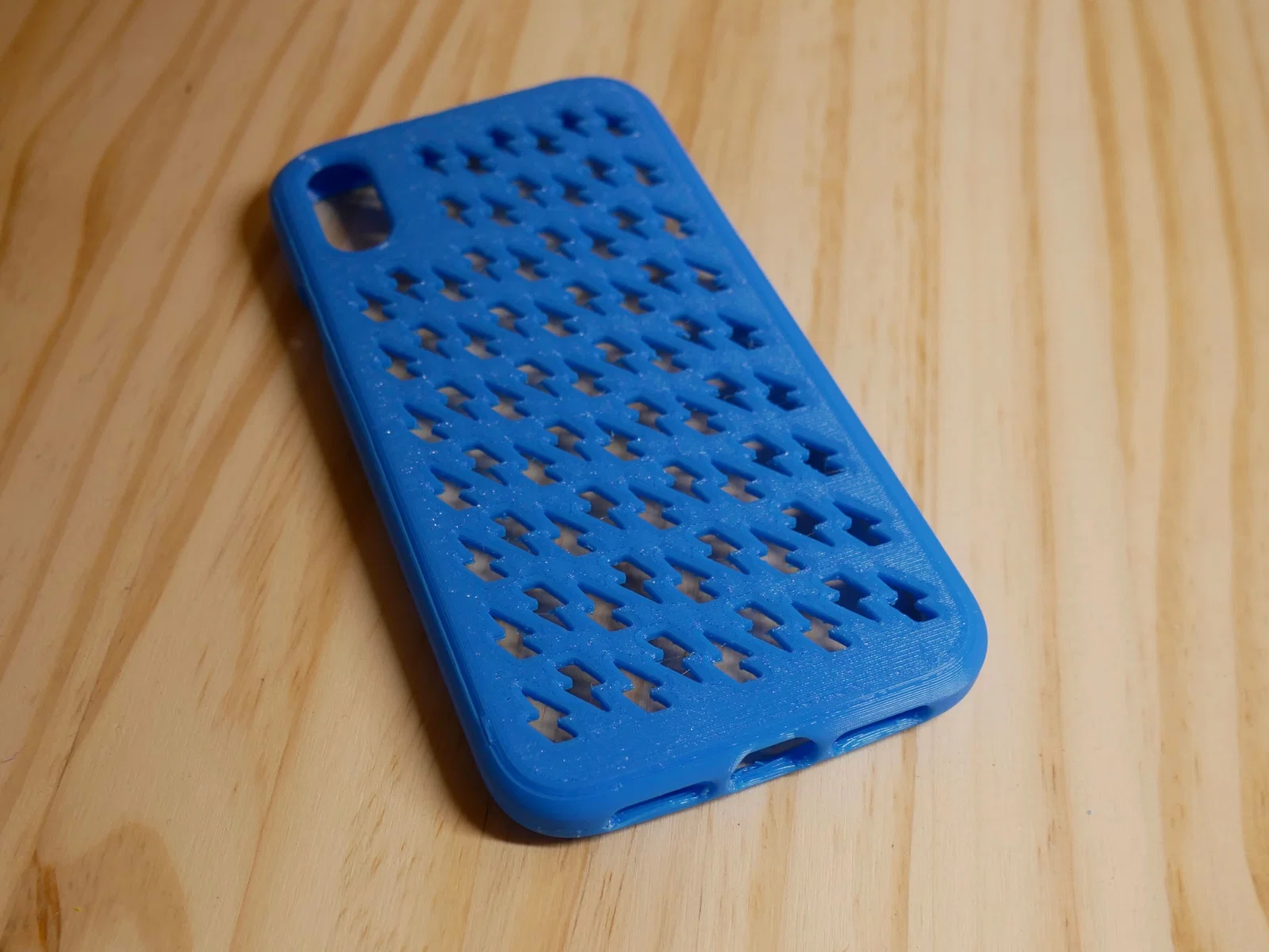 Mẫu ốp lưng này là bản remix từ Apple iPhone XR case and bumper của bạn Fluki. Mình đã sử dụng Blender để chỉnh sửa của bạn Cool rồi lặp lại để tạo thành hoa văn. Mình đăng tải bản remix này vì mẫu hoa văn kiểu này khó thực hiện nhanh bằng các công cụ modifier trong PrusaSlicer. Mình đã in ốp bằng nhựa Overture Digital Blue TPU với độ cứng shore 95A.