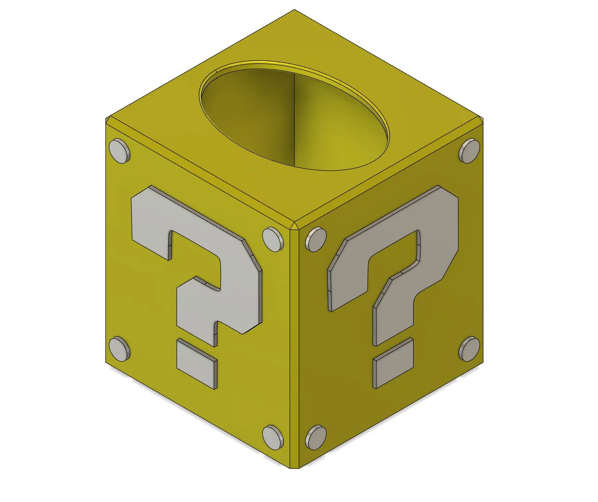 - Vật liệu đề xuất: Bạn nên sử dụng nhựa PLA với tông màu vàng tươi cho khối và màu trắng hoặc bạc cho chi tiết dấu hỏi để có vẻ ngoài chuẩn xác nhất như trong game.